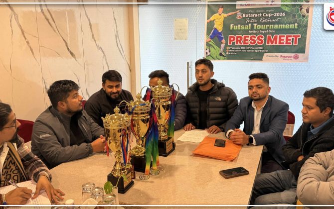 बुटवल । रोटर्याक्ट क्लव अफ मणिग्रामको आयोजनमा बुटवलमा शनिबार हुने दोस्रो इन्टर रोटर्याक्ट फुटसल टुर्नामेन्ट २०२६ को सम्पूर्ण तयारी पूरा भएको छ। क्लवले पत्रकार सम्मेलन गर्दै तयारी पूरा भएको जानकारी गराएको हो। बुटवल-१०को स्वर्णिम फुटसल ग्राउण्डमा पुरुष र महिला गरि...