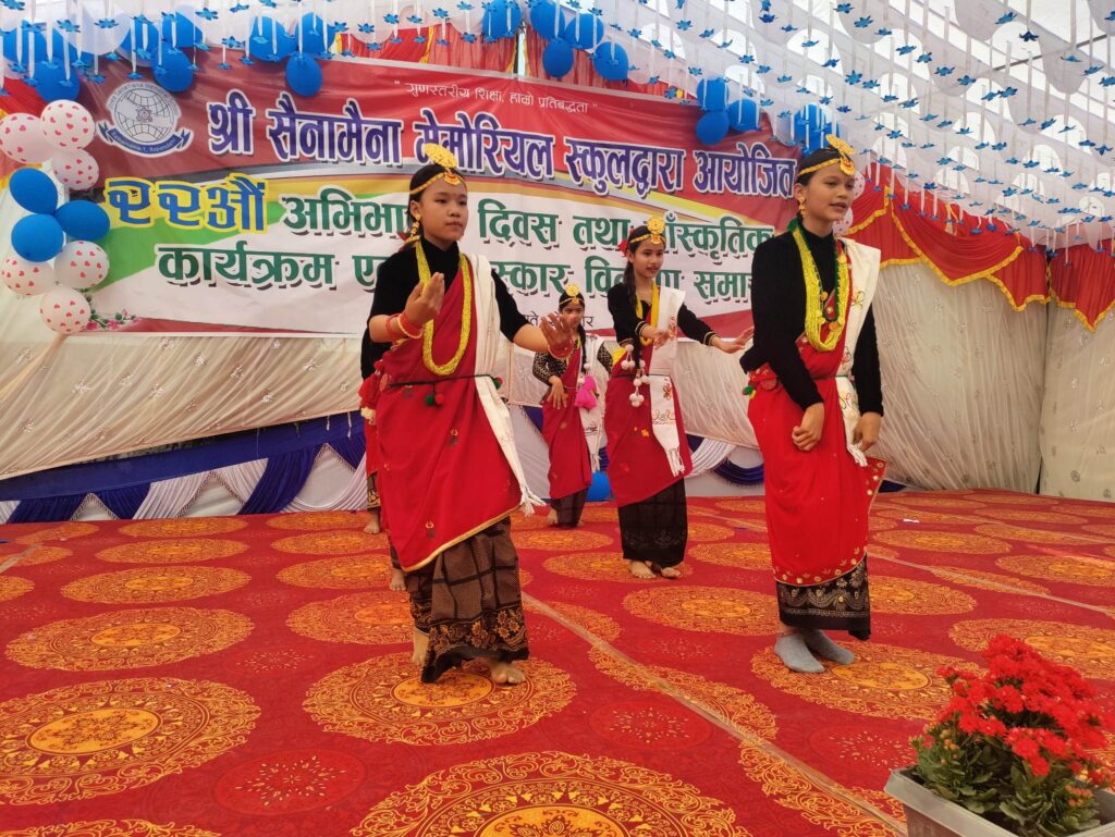 बुटवल । सैनामैना नगरपालिकाको वार्ड नम्वर १ आदर्श पथ स्थित सैनामैना मेमोरियल स्कुलले सोमबार २२ औं अभिभावक दिवस तथा मेमोरियल डान्स स्टारको फाईनल प्रतियोगिता सम्पन्न गरेको छ।