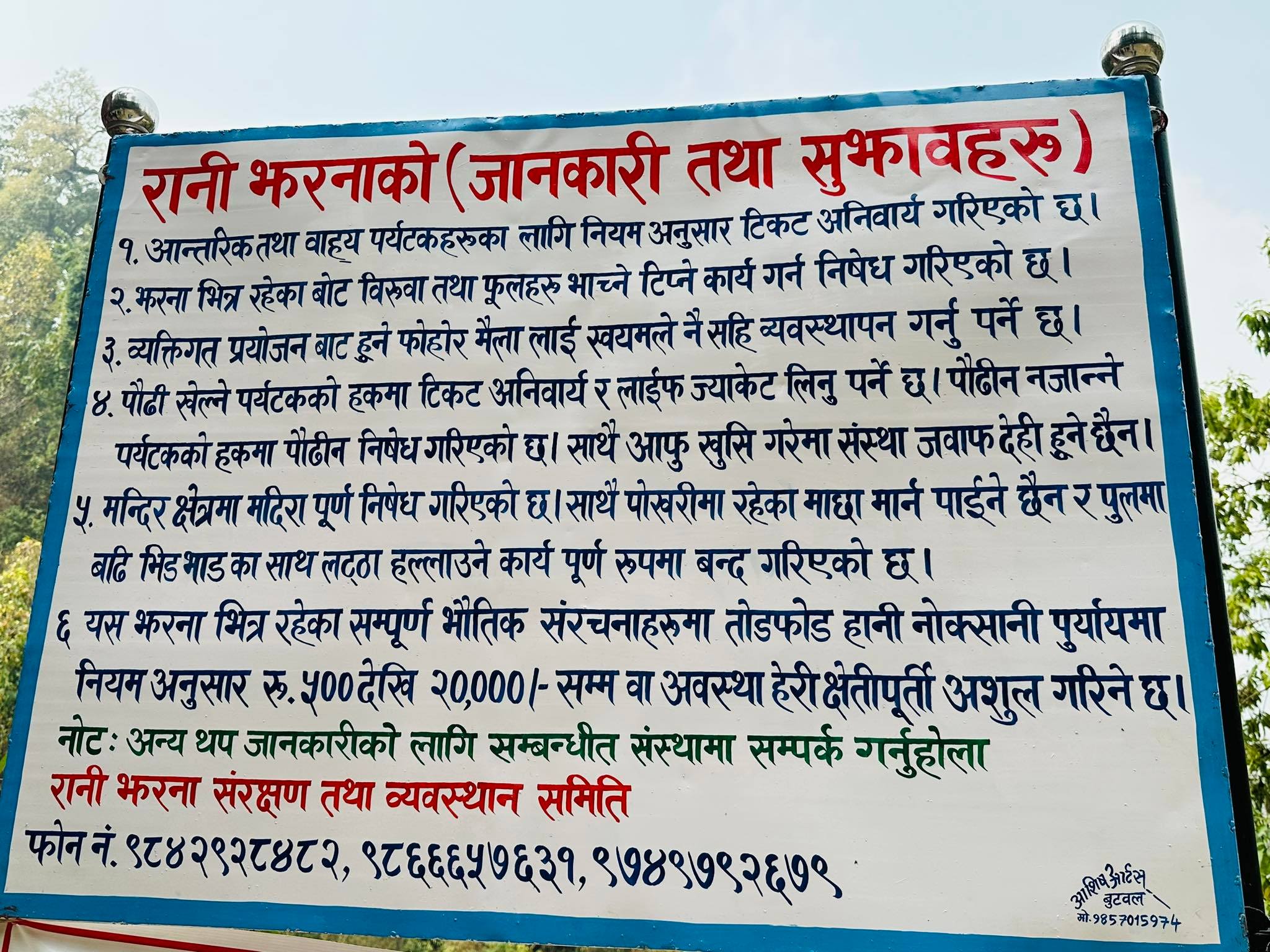 डिभिजन वन कार्यालय पाल्पाबाट प्राप्त ५ लाखको बजेट र ढापखोला सामुदायिक वनको आन्तरिक स्रोतबाट झरनामा आर्कषक काठको रेलिङ र पुल बनाएको उनले बताए । दोभान एकीकृत पर्यटन विकास केन्द्रका अध्यक्ष दलबहादुर गुरुङले रानी झरनासहित यहांका अन्य पर्यटकीय क्षेत्रले सबैको ध्यान तानेको बताए । तिनाउ गाउंपालिका अध्यक्ष प्रेम श्रेष्ठले रानी झरनालाई विशेष प्राथमिकतामा राखेर योजना बनाउने र तिनाउका सबै पर्यटकीय क्षेत्रको संरक्षण गरिने बताए ।