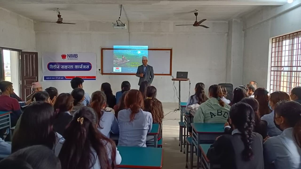 बुटवल । ‘ग्लोबल मोनी विक्स’ अन्तरगत नेपाल इन्भेष्टमेण्ट मेगा बैंक लिमिटेड सेमलार शाखाद्धारा शुद्धोधन गाउँपालिका ०२ मा रहेको बनगाई माध्यामिक विद्यालयमा वित्तिय साक्षरता कार्यक्रम गरेको छ ।