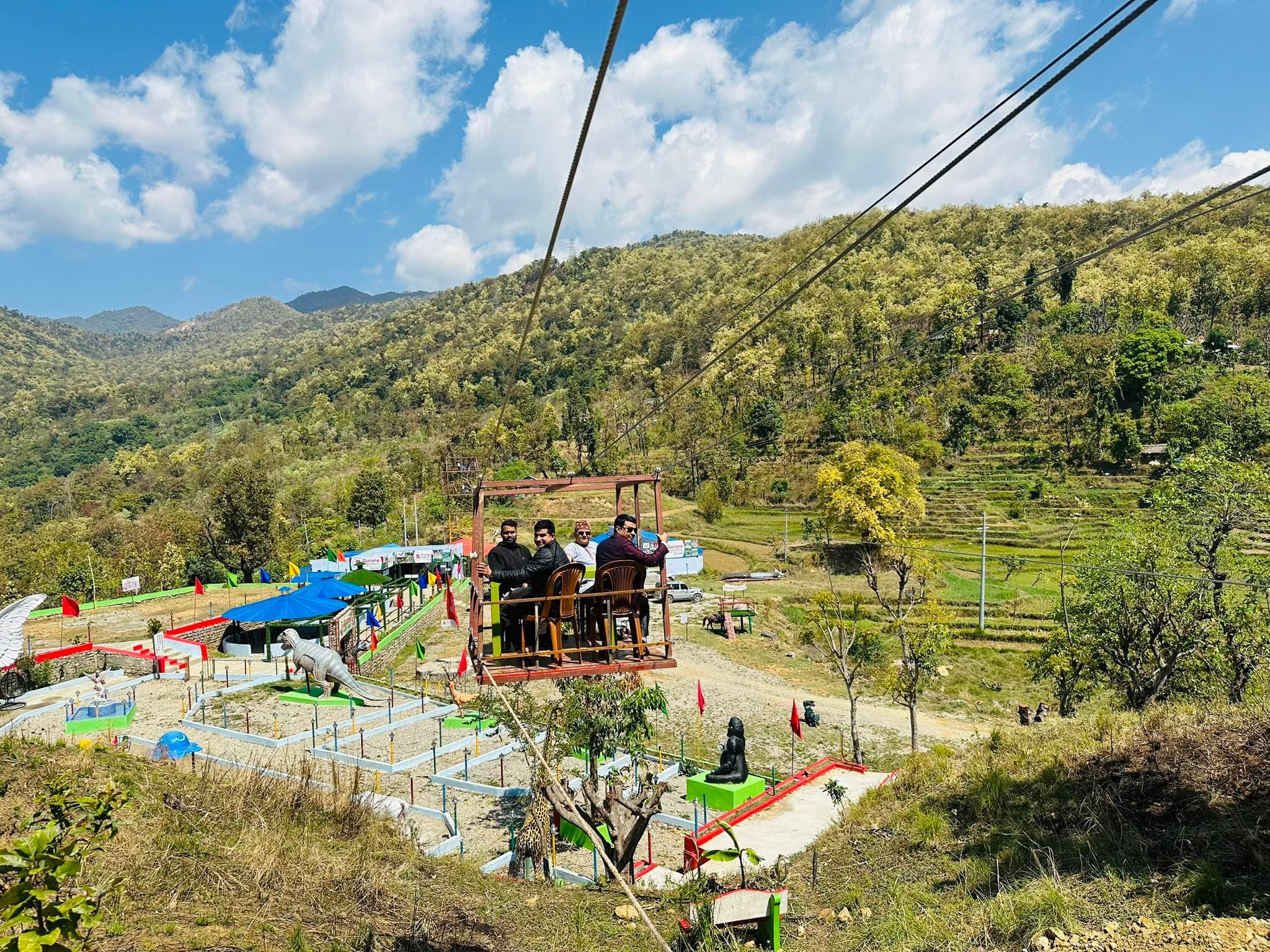 चार जना उद्यमीहरु नारायण भुसाल, प्रियंका अर्याल, निर्मला भट्टराई र स्मृति भुसालको संयुक्त लगानीमा सय रोपनी जग्गामा रिसोर्ट सञ्चालनमा आएको हो । रिसोर्टमा जीपलाइन, स्काई साइक्लिङ, स्काई क्याफे र नेपालमै पहिलोपटक स्काई बेड (तारमा झुण्डिएर सुत्ने बेड ), घोडचढी,