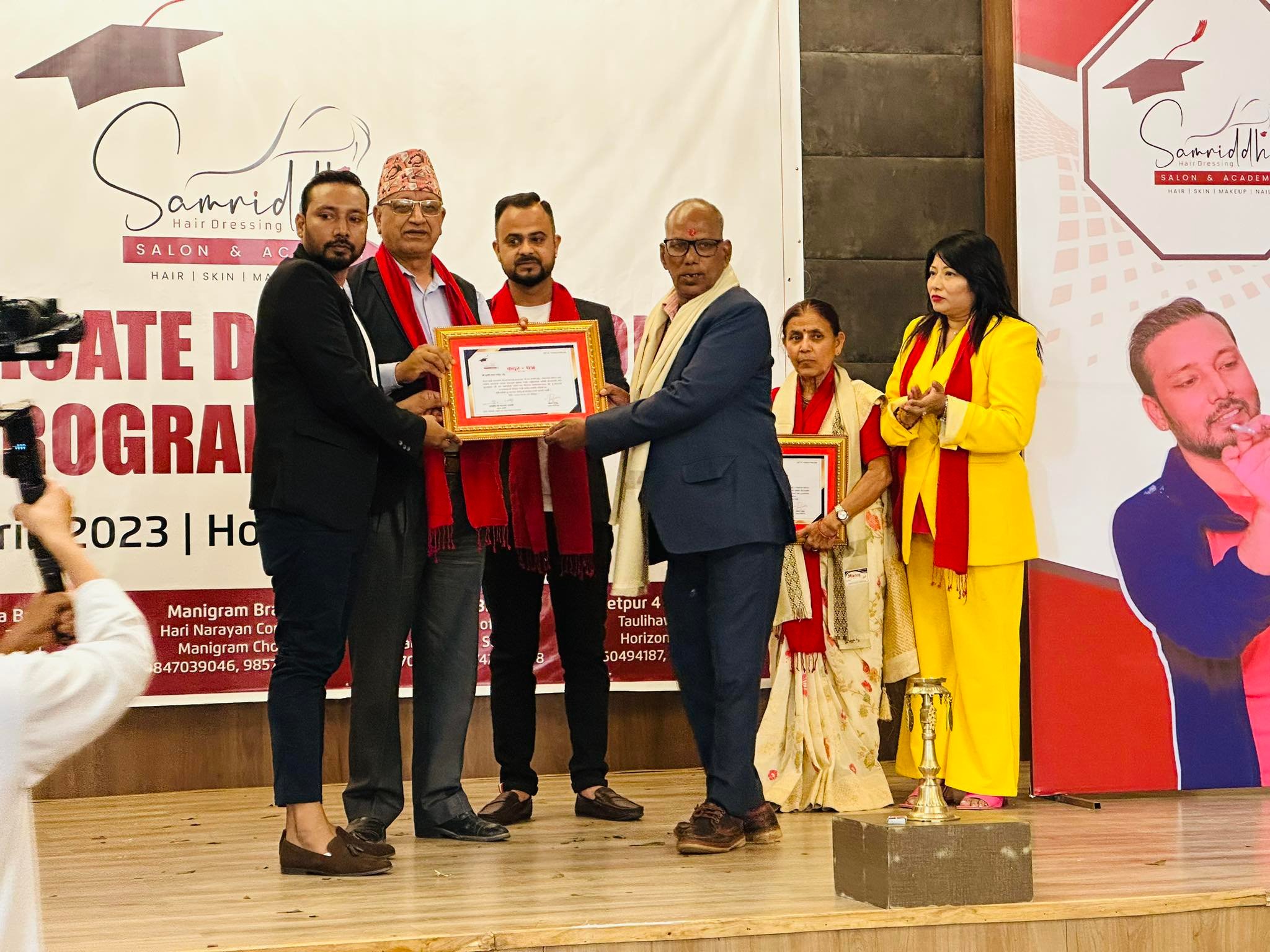 बुटवल ६ अमरपथ सिंह कम्प्लेक्समा प्रधान कार्यालय रहेर कपाल, छाला, मेकअप र नङ आर्टको क्षेत्रमा काम गर्दै आएको समृद्धि हेयर ड्रेसिङ सलोन एण्ड एकेडेमीले एकेडेमीमा तालिम लिएका ४० जना बिद्यार्थीहरुलाई दिक्षित गरेको छ। सोमबार बुटवलमा प्रमाणपत्र बितरण कार्यक्रम २०२३ कार्यक्रमको आयोजना गर्दै तालिम पूरा गरि सफल कर्मचारी र सफल ब्यवसायी बन्न सक्ने विद्यार्थीहरुलाई सम्मान गरेको हो।