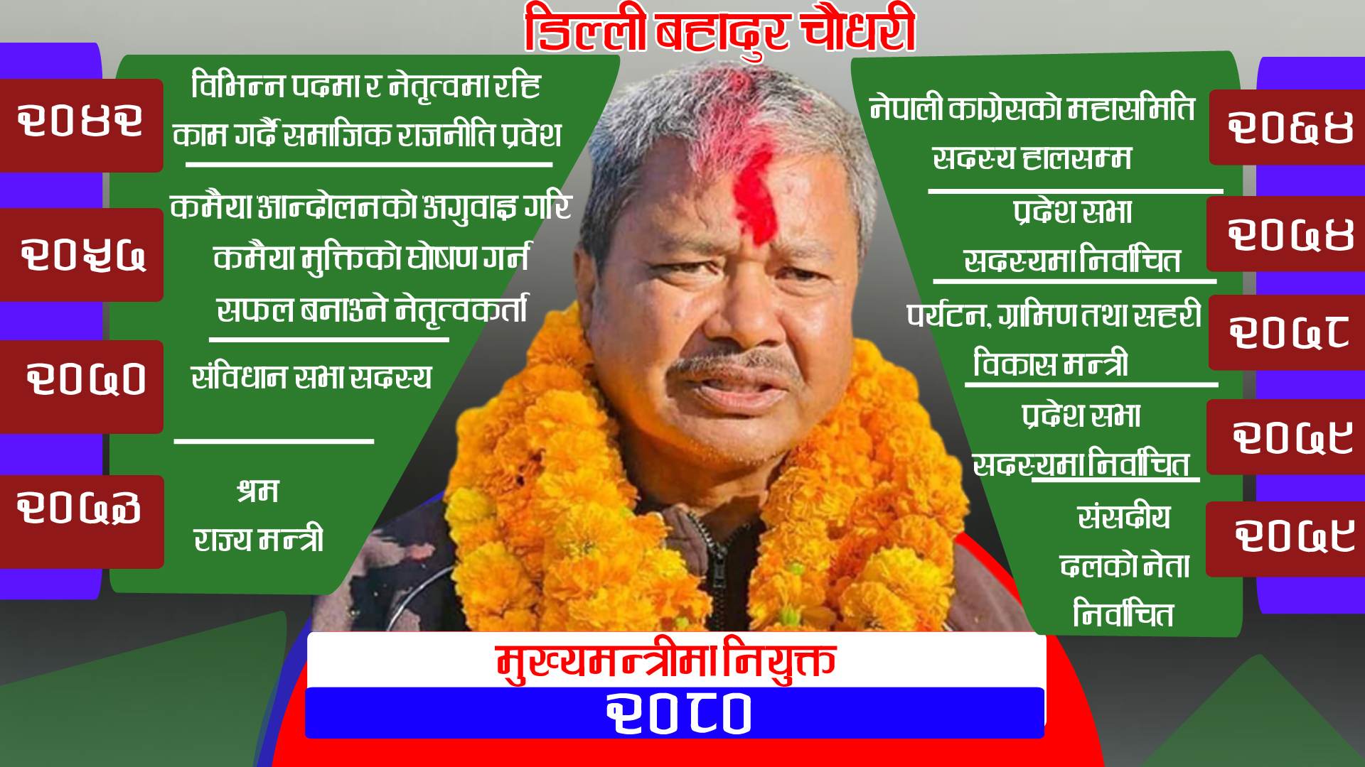 बुटवल । लुम्बिनी प्रदेश सरकारको मुख्यमन्त्रीमा नेपाली कांग्रेस प्रदेश संसदीयदलका नेता डिल्ली बहादुर चौधरी नियुक्त भएका छन् । प्रदेश प्रमुख अमिक शेरचनले आज अपरान्ह चोधरीलाई मुख्यमन्त्रीमा नियुक्त गरेका हुन् ।