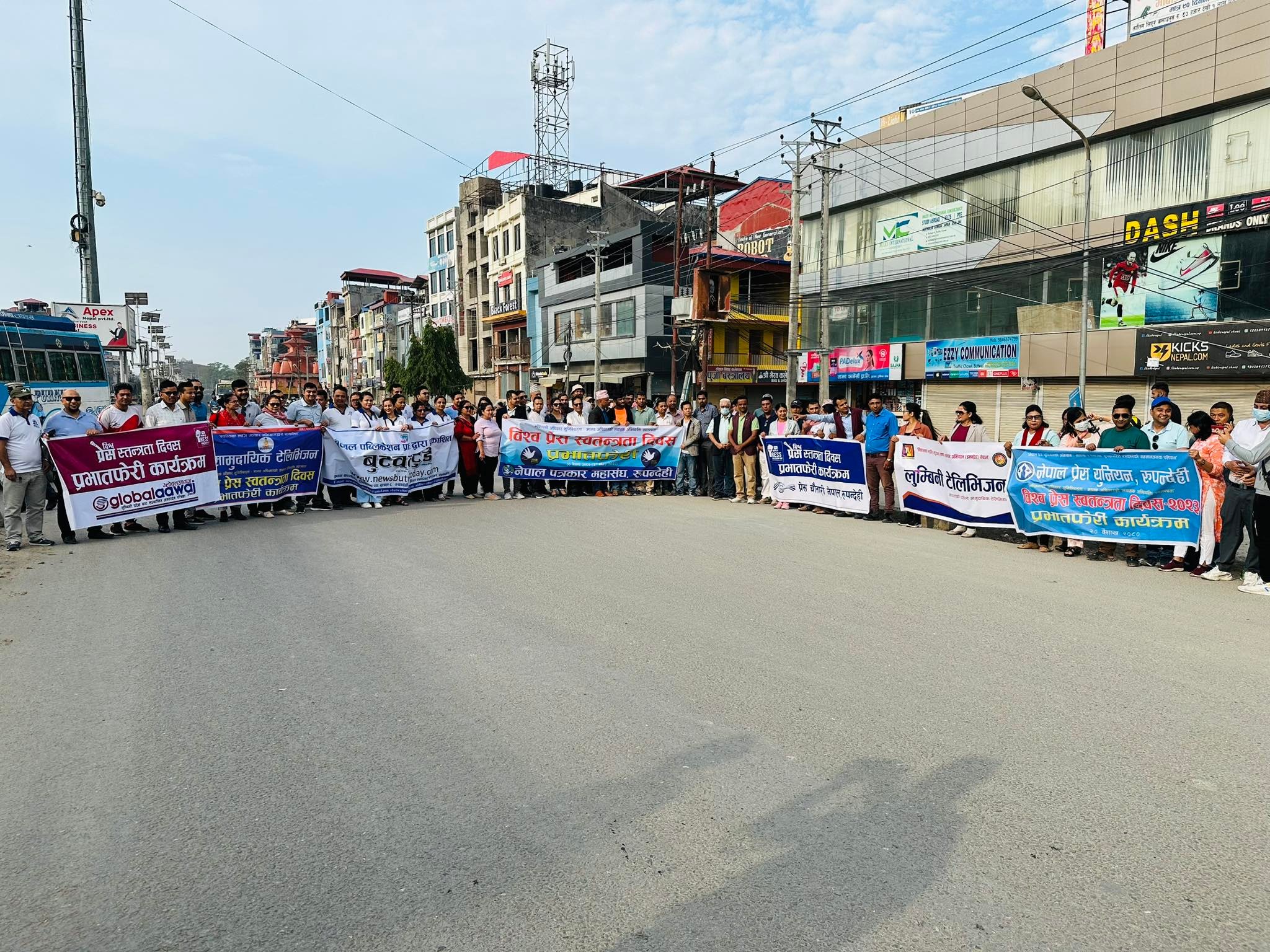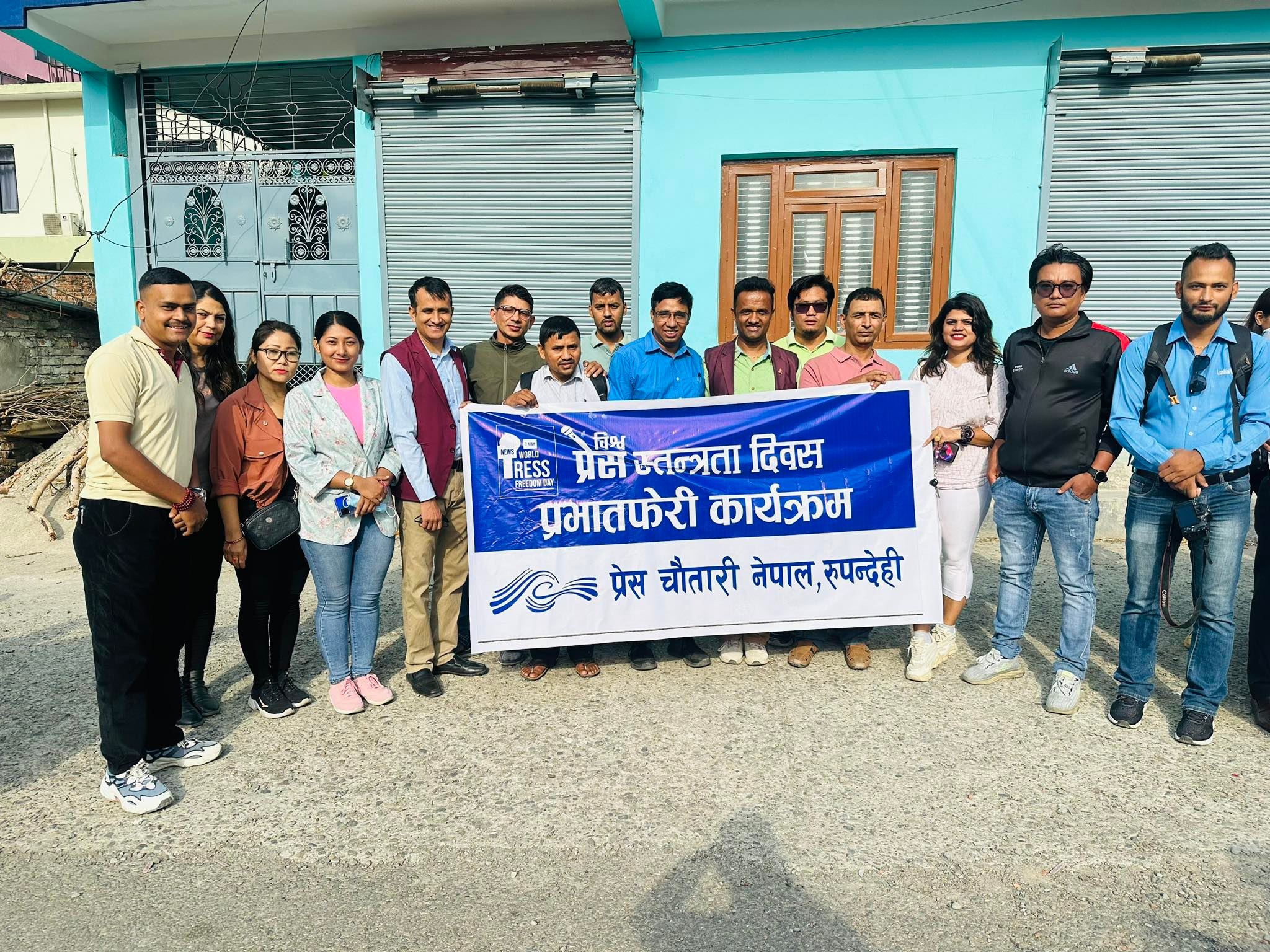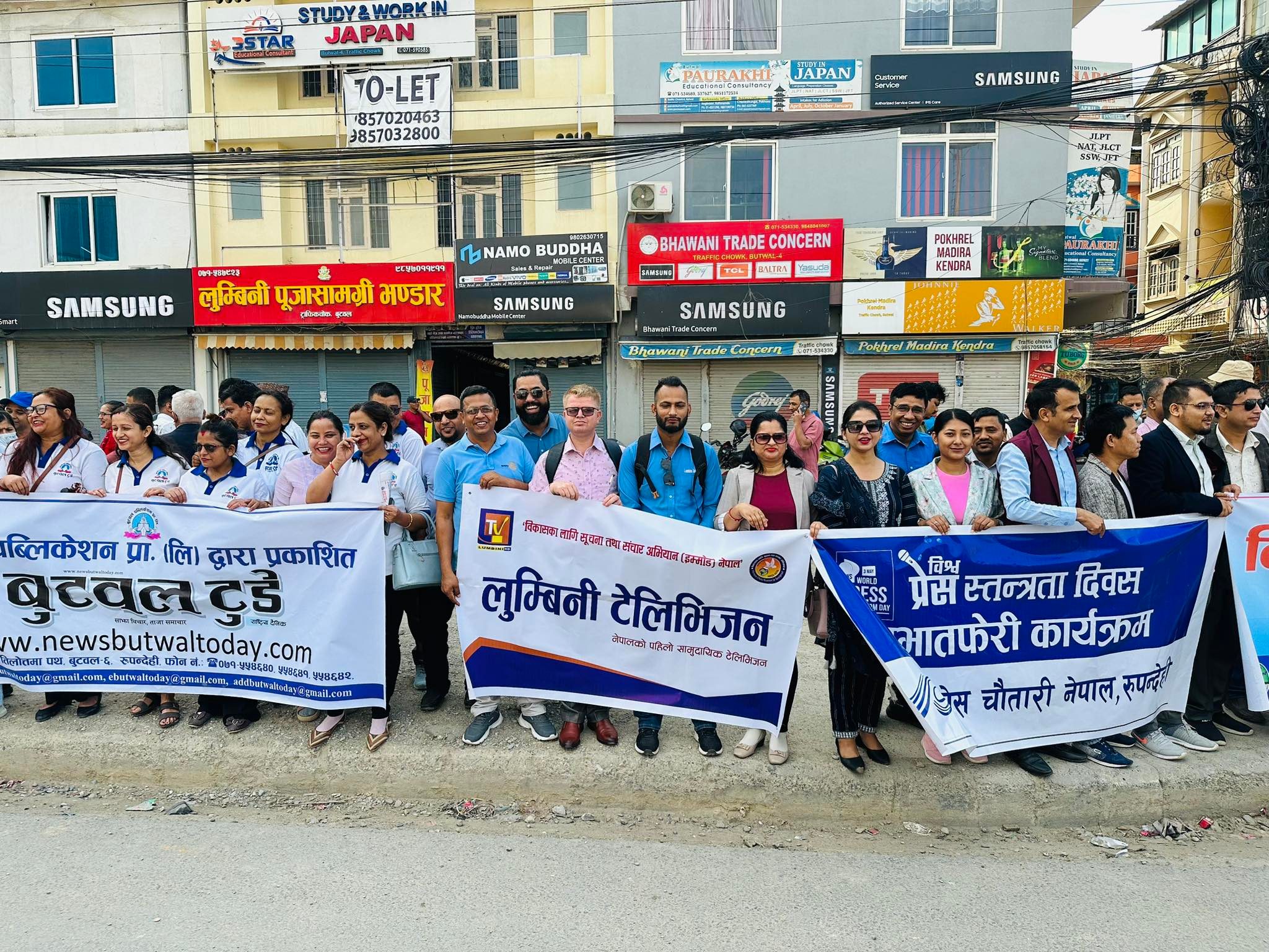 नेपालसहित विश्वभर आज विश्व प्रेस स्वतन्त्रता दिवस मनाइँदै छ। कतिपय ठाउँमा विहानै विभिन्न कार्यक्रम गरी मनाइँयो । बुटवलमा पनि प्रेस स्वतन्त्रता दिवस प्रभातफेरी कार्यक्रमको आयोजना गरि मनाइएको छ ।