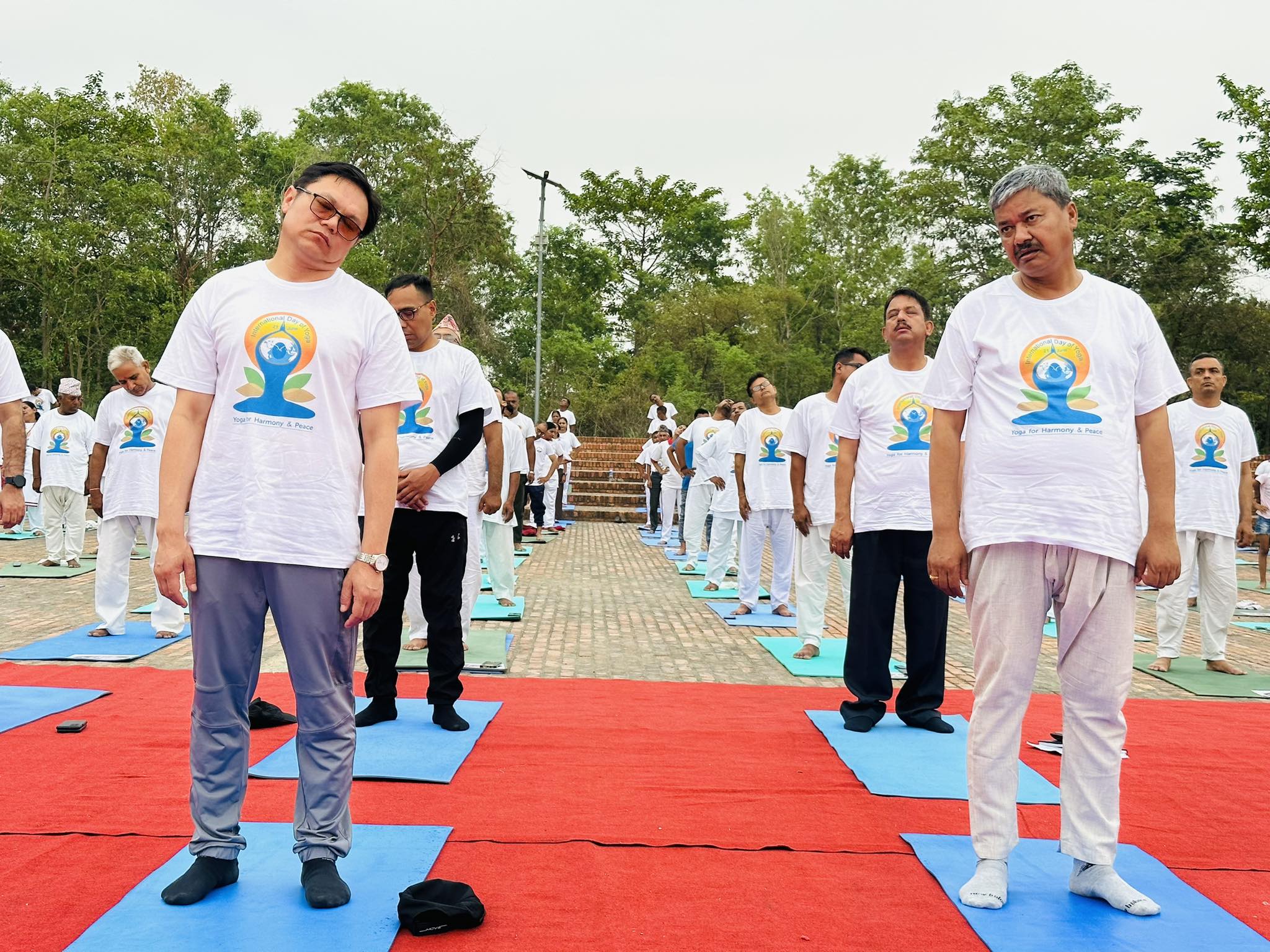 लुम्बिनी । बुद्धजन्मस्थल लुम्बिनीमा शान्ति र सदभावका लागि योग अभ्यास गराइएको छ । अन्तर्राष्ट्रिय योग दिवसको पूर्व सन्ध्यामा संस्कृती पर्यटन तथा नागरिक उडडयन मन्त्री सुदन किराँती, लुम्बिनी प्रदेशका मुख्यमन्त्री डिल्लीबहादुर चौधरी, भारतीय राजदूत नविन श्रीवास्तवको उपस्थितीमा लुम्बिनीमा शान्ति र सदभावका लागि योग दिवस मनाइएको हो ।