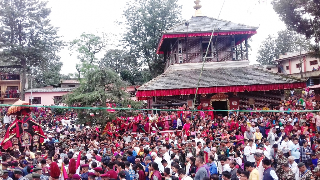 कर्णेल सिंहले विस १८७२ देखी १८७६ सम्म मन्दिर बनाएका थिए । विस १८७७ देखी कृष्ण जन्माष्टमीको भोली पल्ट विजयउत्सव स्वरुप भगवती जात्रा मनाउन थालेको परम्परा आज सम्म चल्दै आएको छ ।