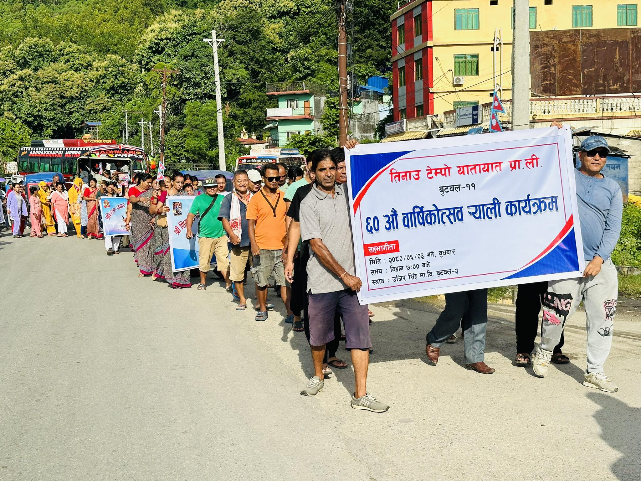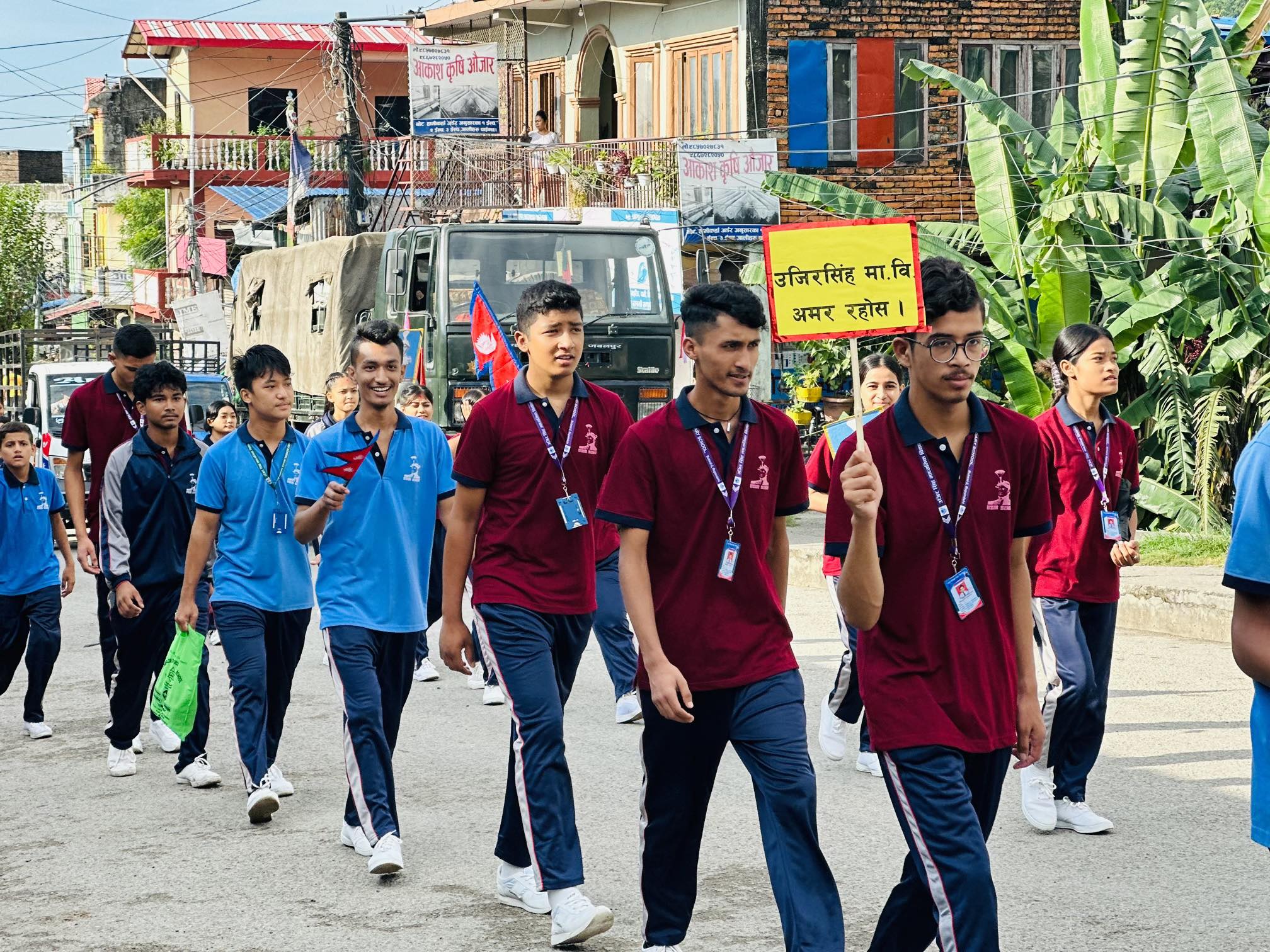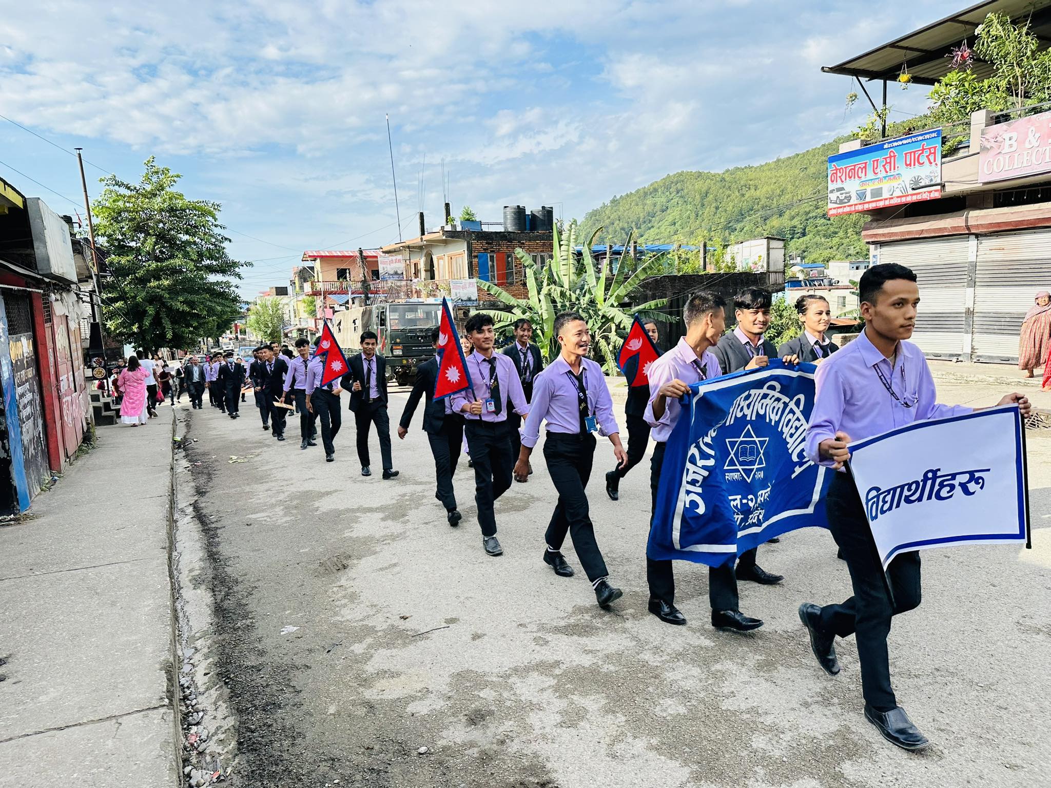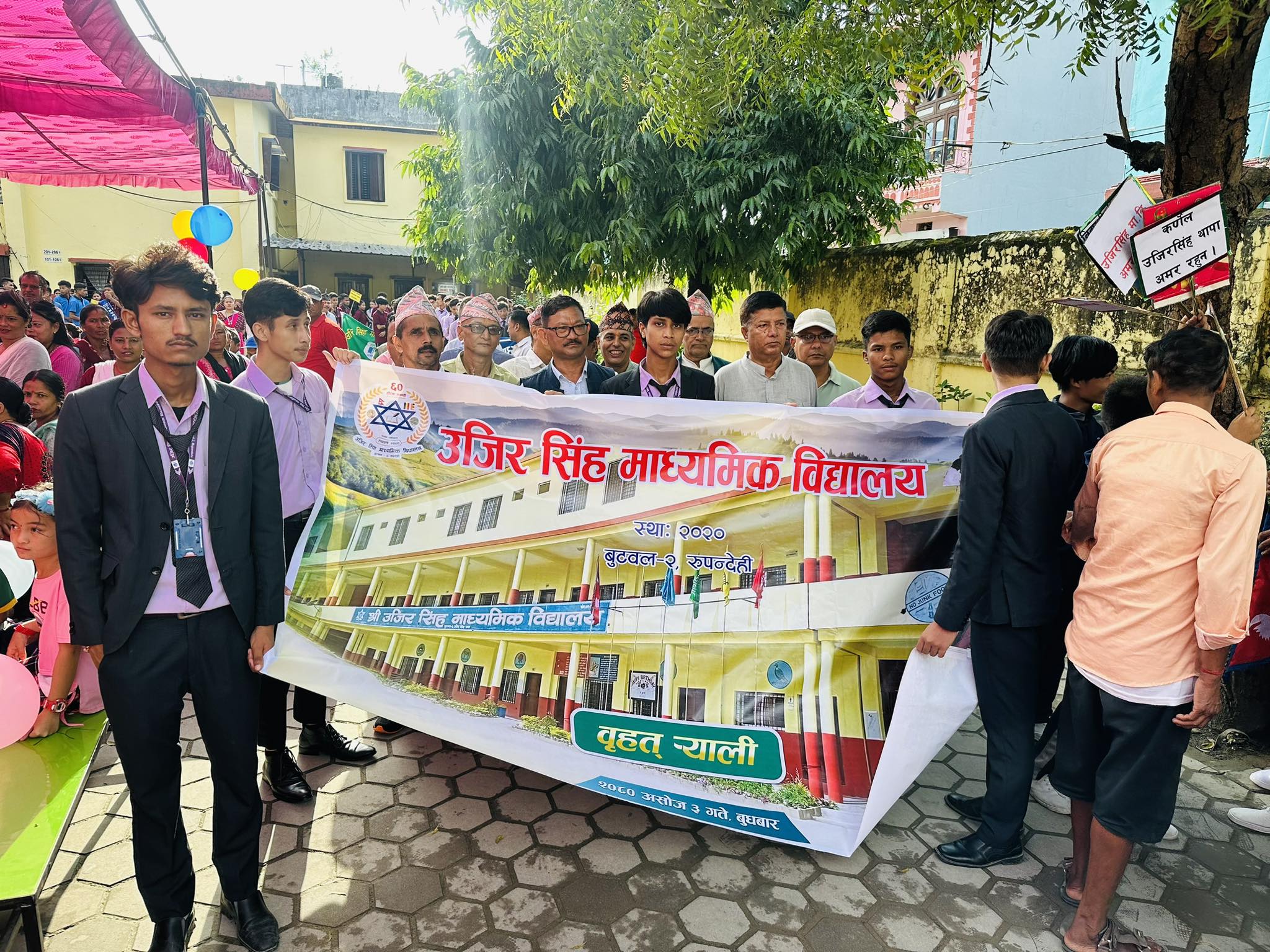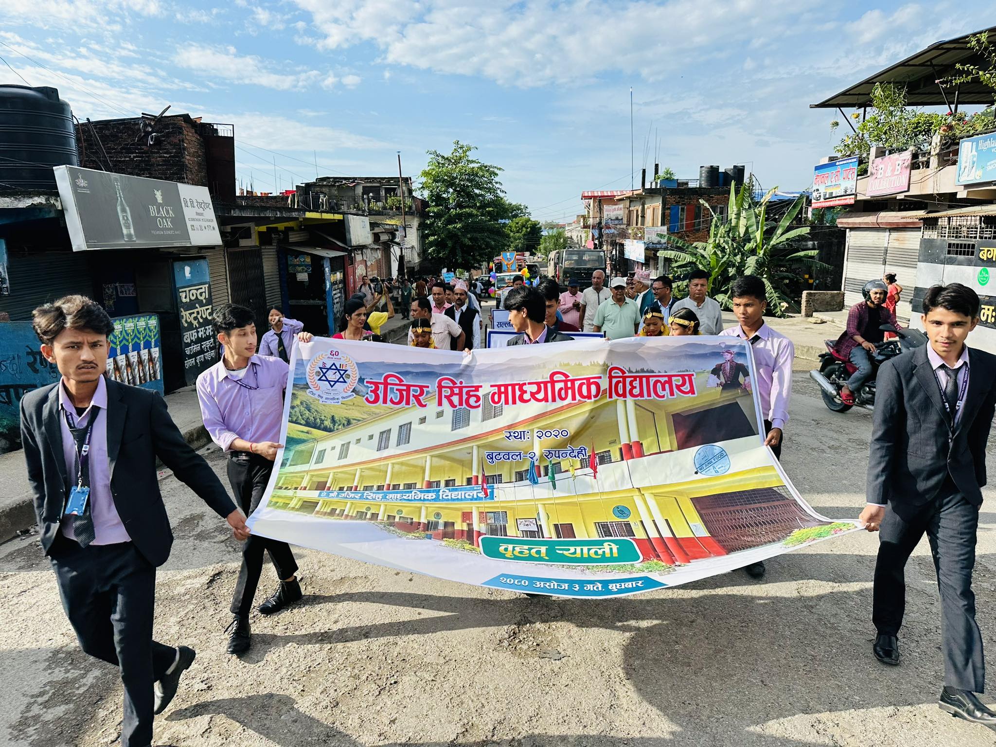 विद्यालय परिसरबाट शुरु भएको र्याली पारी बुटवल, हाटबजार, जनबिनायक मन्दिर, निमचोक हुंदै पुनः विद्यालयमा पुगेर समापन गरिएको थियो । र्यालीमा विद्यार्थी, टोल समिति, जातीगत संघसंस्थाहरुको समेत सहभागिता रहेको थियो ।