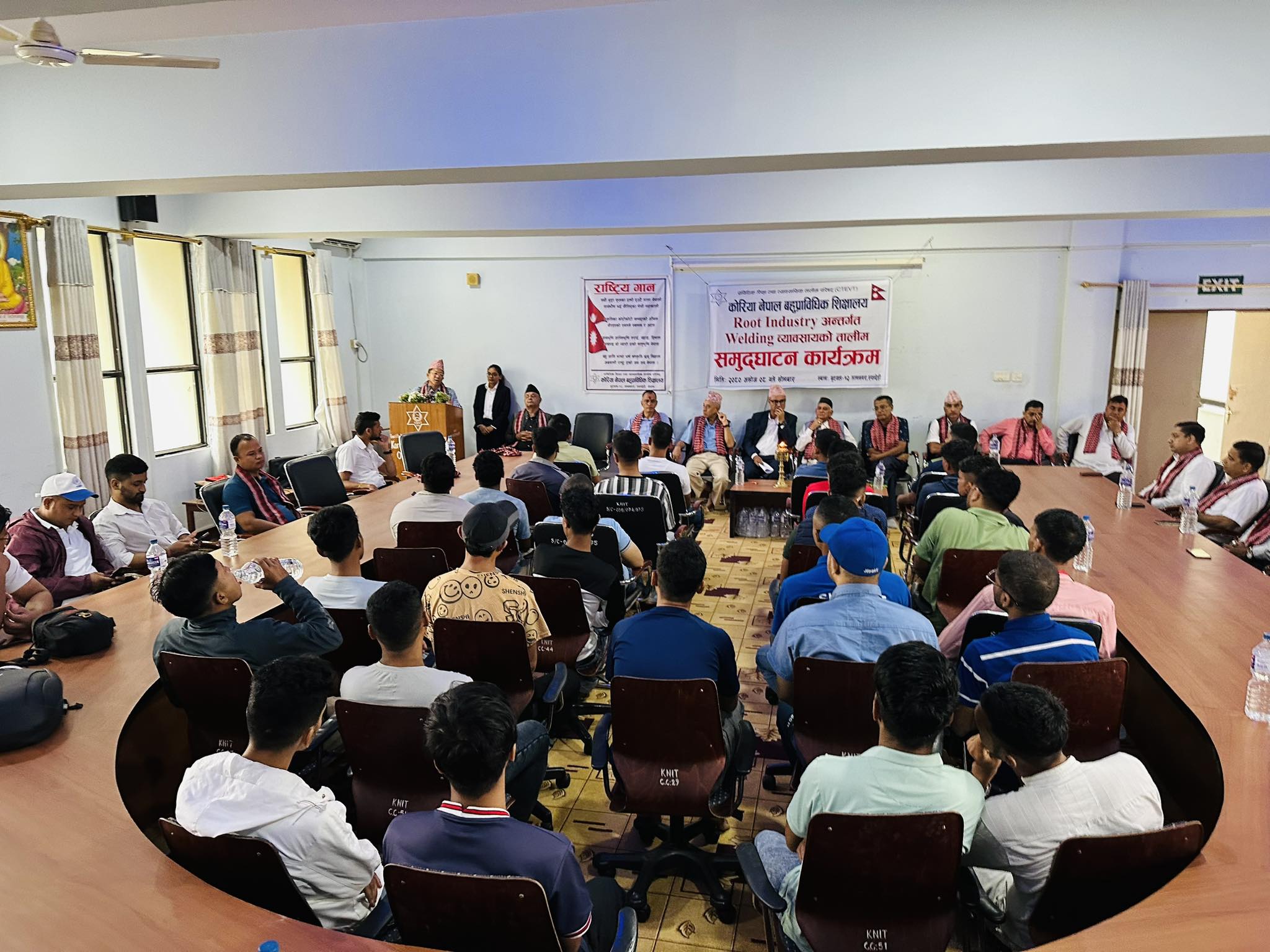 दक्षिण कोरियामा सीपयुक्त जनशक्ति पठाउन उद्देश्यले देशभरबाट छनौट भएका ३५ जना युवालाई २४० घण्टाको वेल्डिङ तालीम सञ्चालन भएको हो । तालीममा सहभागी युवा सीप परिक्षण तथा भाषा परिक्षापछि छनोट भई कोरिया जानेछन । तालीमको सोमबार नेकपा एमालेका प्रदेशसभा सदस्य तथा पूर्वमन्त्री भोजप्रसाद श्रेष्ठले उद्घाटन गरे ।