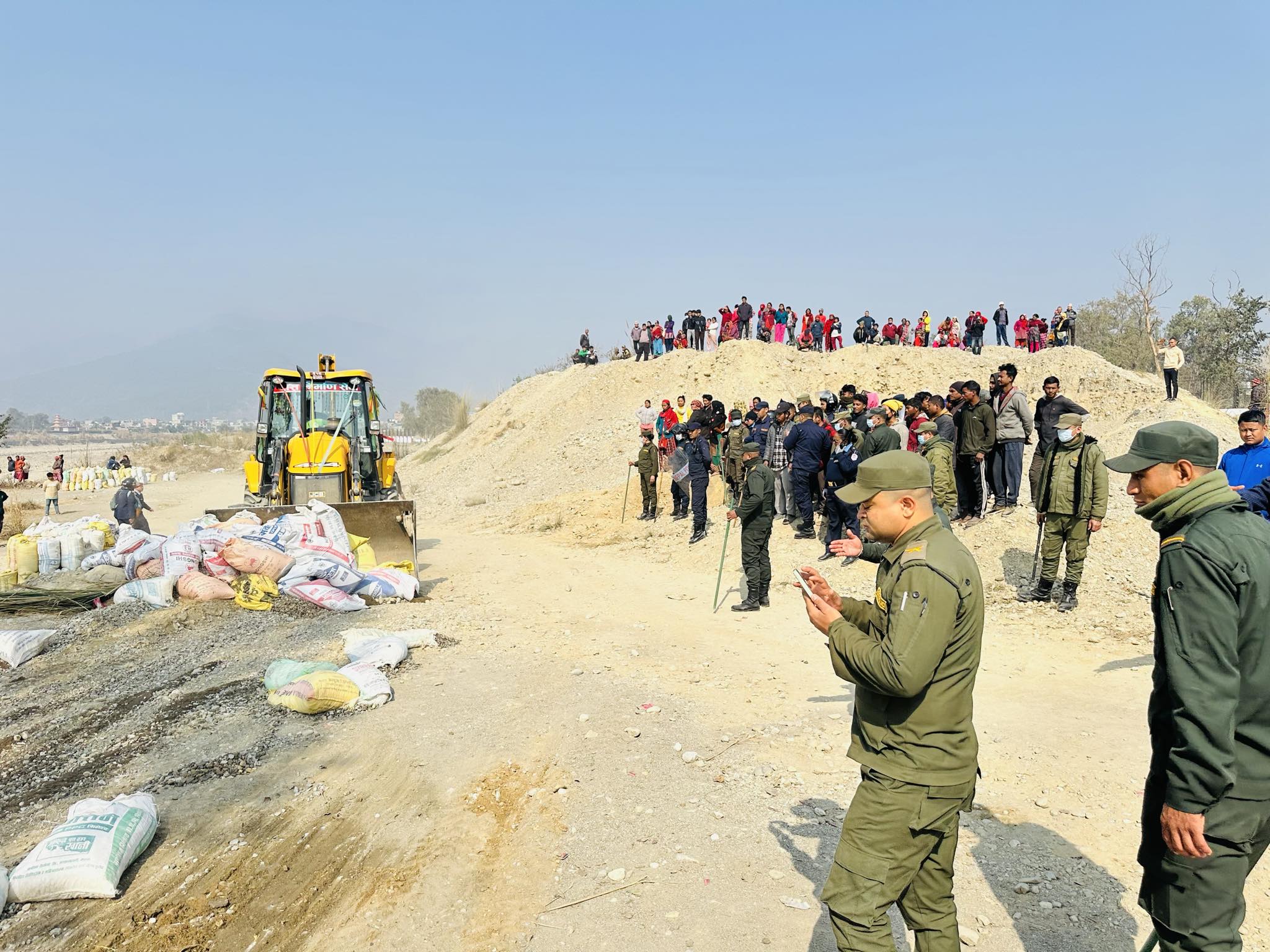 जनप्रतिनिधी, नगरप्रहरी, नेपाल प्रहरी र स्थानियहरुको रोहबरमा त्यहाँबाट विक्रिका लागि लैजान ठिक्क पारिएका नदिजन्य पद्धार्थ खोलामै फालिदिएपछि केहीले भने यसको विरोध गरेका थिए ।