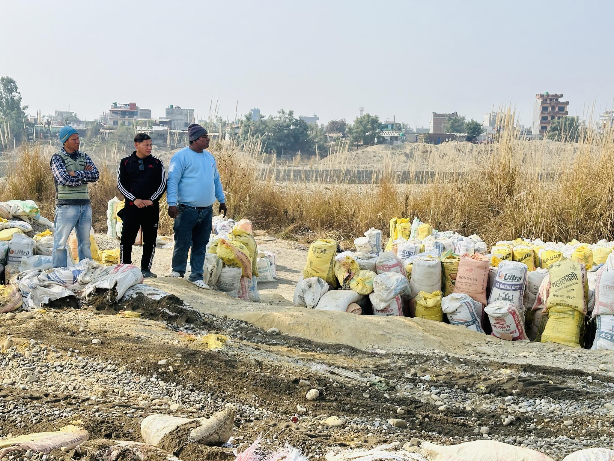 खोलाबाट बोरा निकालेर बाटोमा डम्प गरेको अवस्थामा १२ सय बढि बोरा भेटिएपछि नगरप्रहरी, नेपाल प्रहरीलाई खवर गरिएको थियो । त्यसपछि मात्र बल्ल भेटिएको नदिजन्य पद्धार्थ खोलामै फ्याकिएको थियो ।