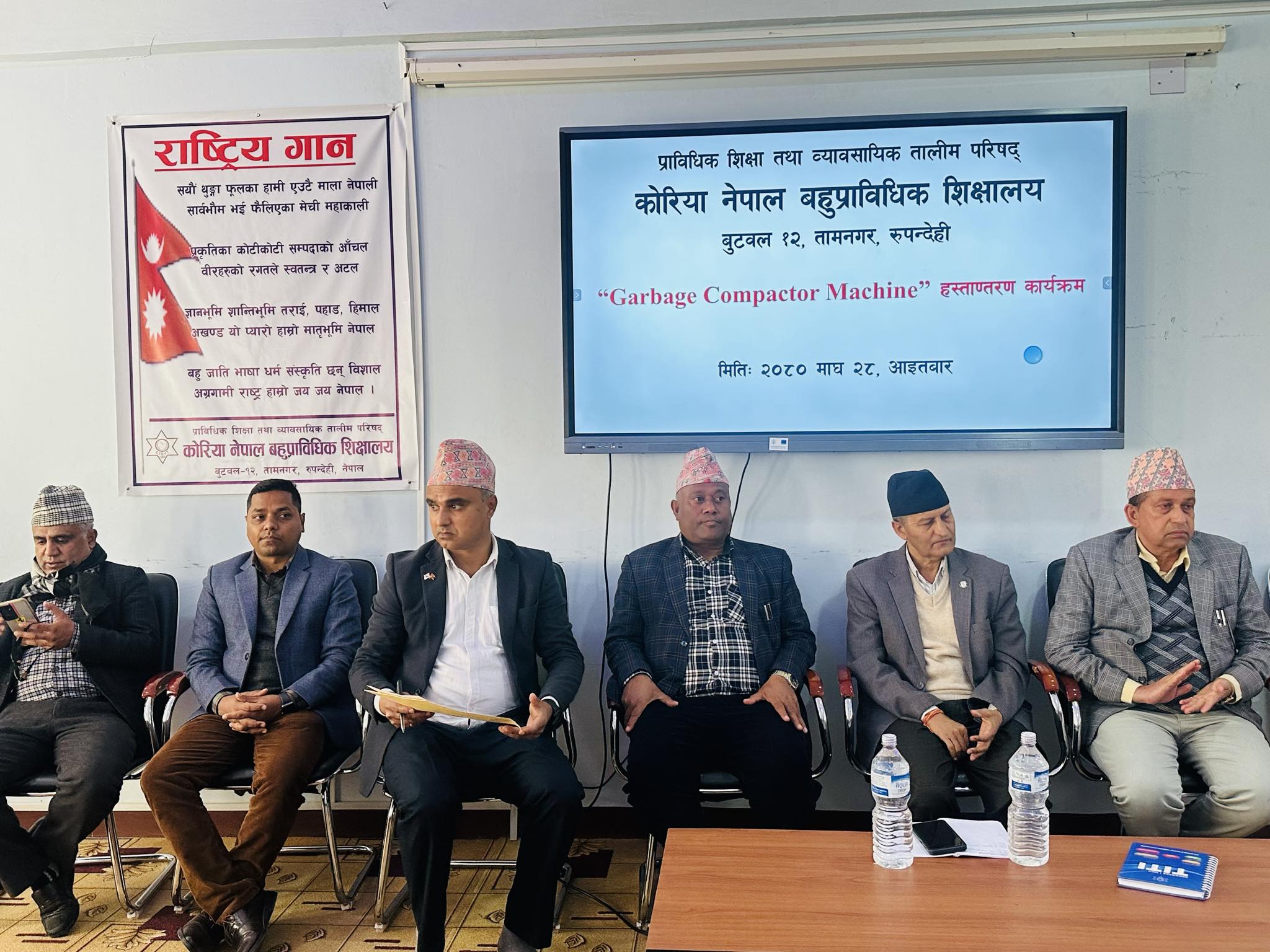 बुटवल । बुटवल उपमहानरपालिका १२ मा रहेको कोरिया नेपाल बहुप्राविधिक शिक्षालयका विद्यार्थीहरुले बनाएको गार्वेज मेसिन अर्घाखांचीको सन्धिखर्क नगरपालिकाले खरिद गरेको छ ।