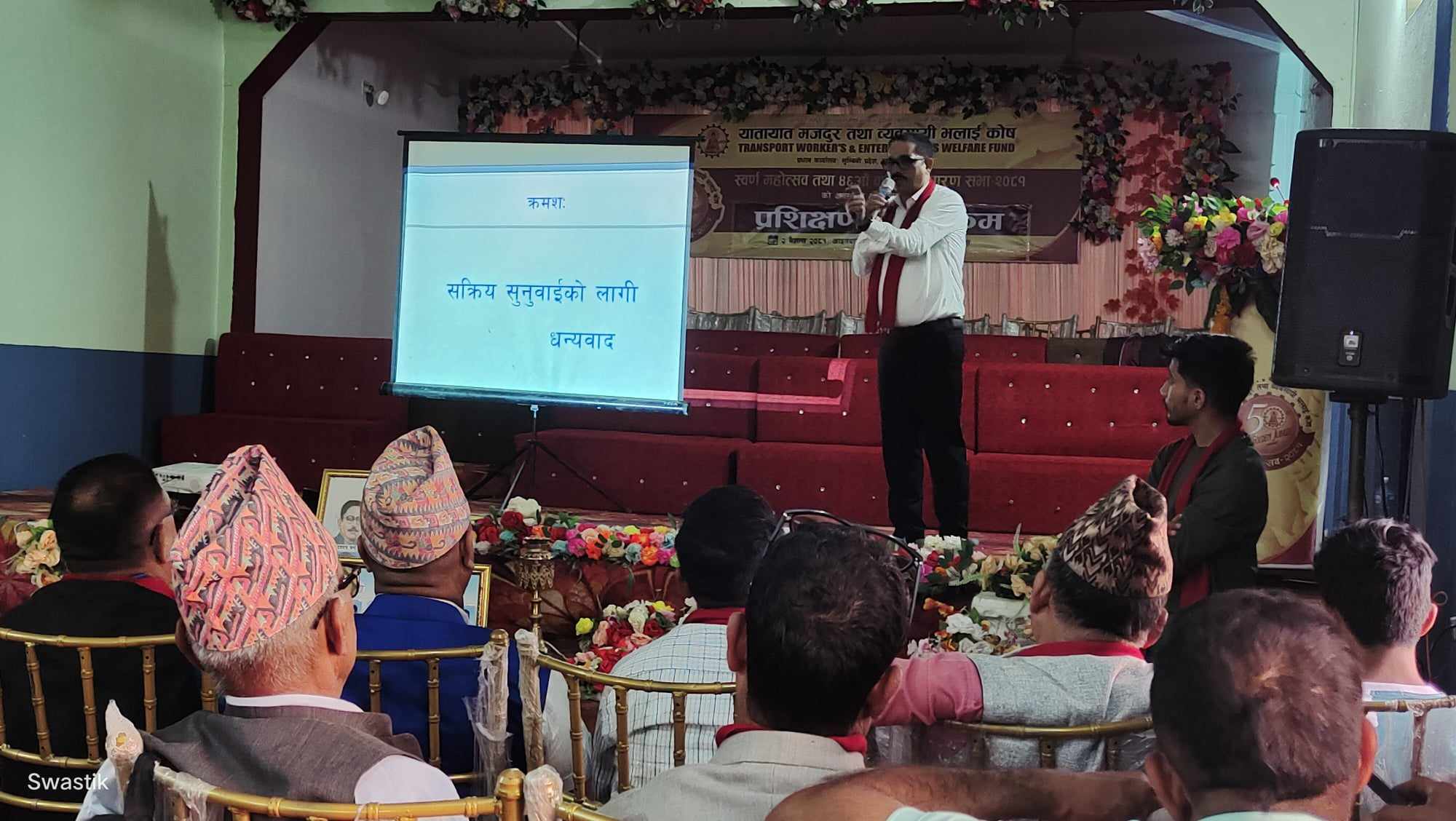 बुटवल । यातायात मजदूर तथा ब्यवसायी भलाई कोषको स्वर्ण महोत्सव तथा ४६ औं वार्षिक साधारण सभाको अवसरमा आइतबार प्रशिक्षण, स्वास्थ्य शिविर तथा बृहत् रक्तदान कार्यक्रम गरिएको छ ।