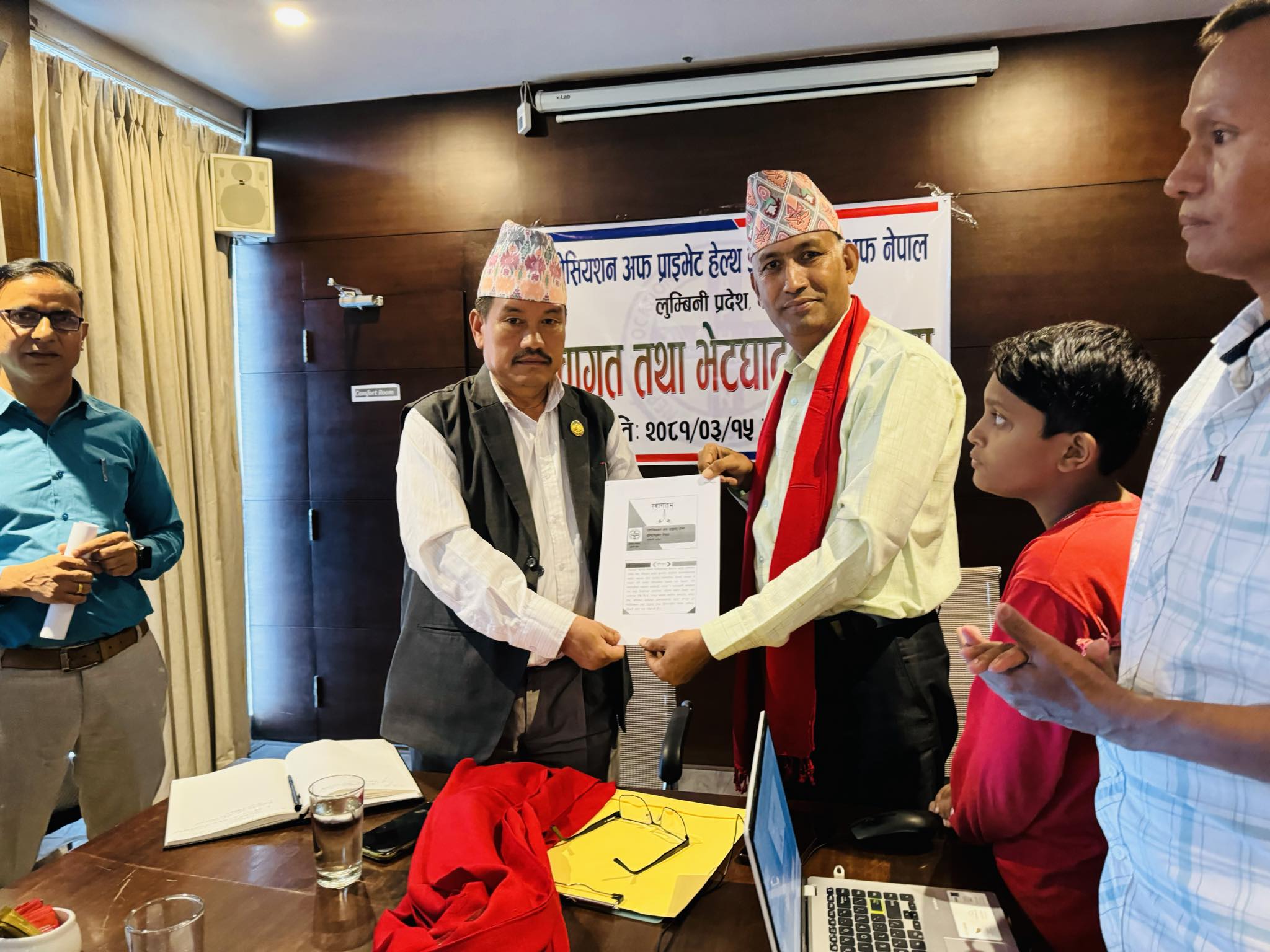 कार्यक्रममा अफिन लुम्बिनी प्रदेशले प्रदेशका स्वाथ्य मन्त्रीलाई आफुले तयार गरेको विभिन्न माग सहितको प्रतिवेदन समेत प्रदान गरेको थियो । प्रदेश अध्यक्ष राम प्रसाद खरेलले व्यवसायीहरुको समस्या समाधानको लागि व्यहारिक, कानूनी र नीतिगत रुपमा समय सापेक्षा परिर्वतन आवश्यक रहेको भन्दै सोही अनुसार पहल गरिदिन मन्त्री संग आग्रह गरे ।