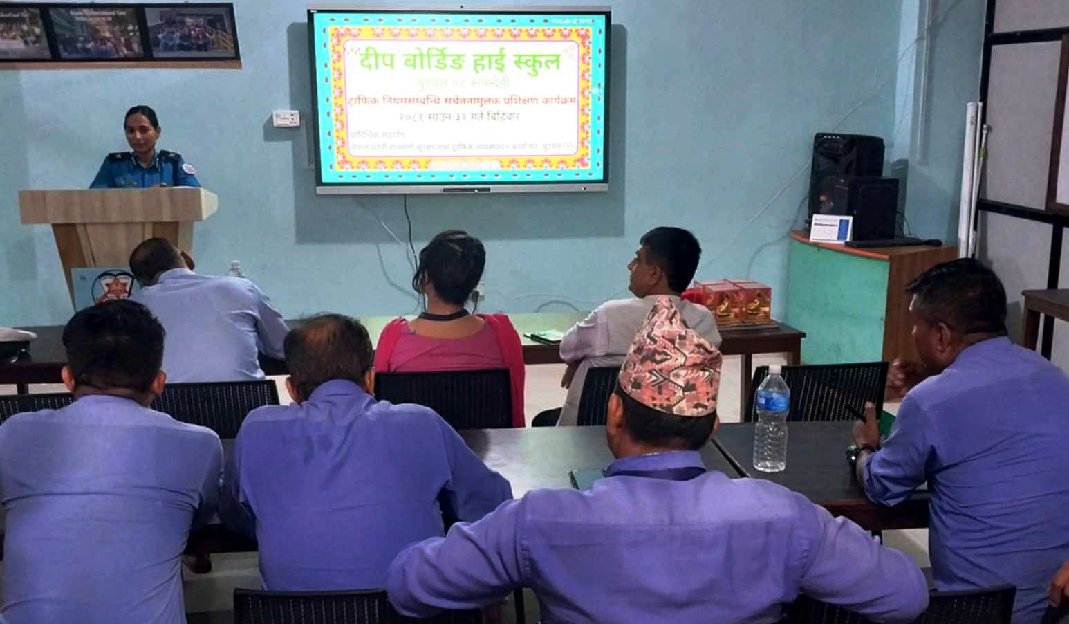 बुटवल। बुटवल–८ सुख्खानगरमा रहेको दीप बोर्डिङ हाई स्कुल (विद्यालय) मा ट्राफिक सचेतना कार्यक्रम भएको छ ।