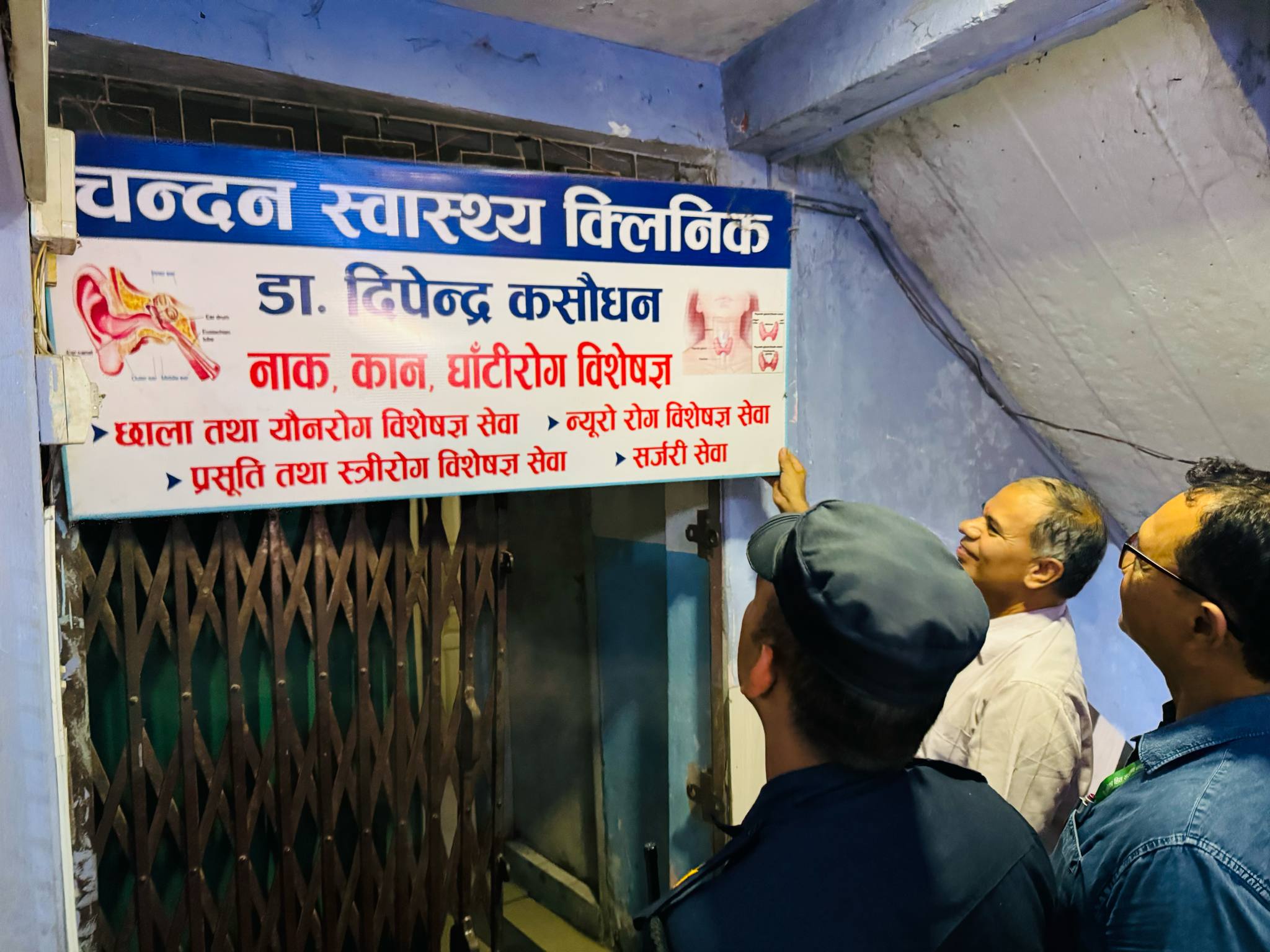 बन्द गरिएका सवै क्लिनिक सञ्चालकहरुलाई दर्ताको प्रमाणपत्र लिएपछि मात्र सञ्चालनका लागि अनुमती दिईने सहायक प्रमुख जिल्ला अधिकारी रानाले बताए ।