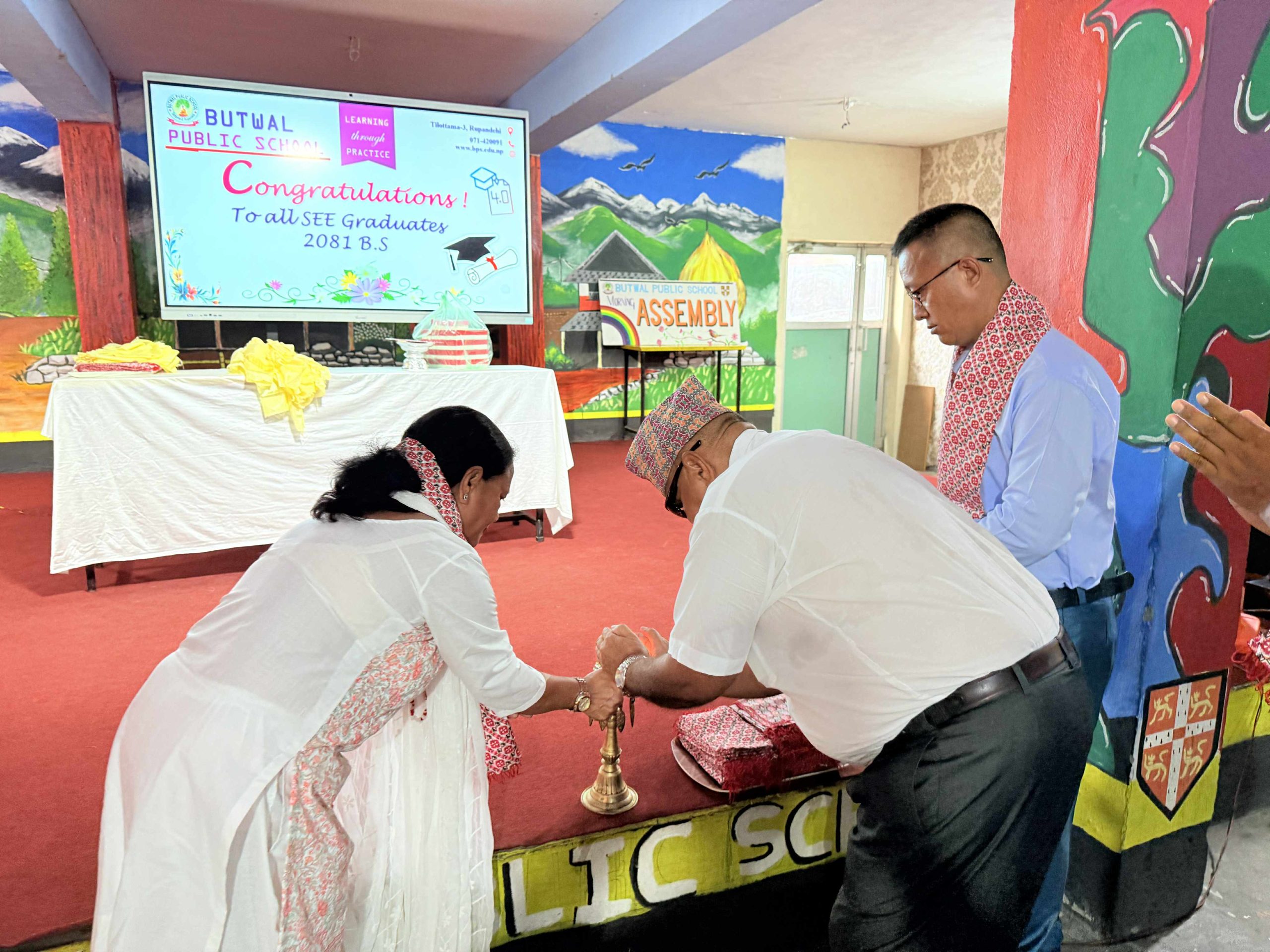 बुटवल । रुपन्देहीको तिलोत्तमा–३ स्थित बुटवल पब्लिक स्कुलले माध्यमिक शिक्षा परीक्षा (एसईई) नजितामा उत्कृष्ट अंक ल्याउने विद्यार्थीहरुलाई सम्मान गरेको छ । सोमबार एक कार्यक्रमका बीच विद्यालयका संस्थापक प्राचार्य हेमलाल शर्मा, तिलोत्तमा नगरपालिका वडा न. ३, शिक्षा समन्वय ईकाइकी चुडाकुमारी विष्टले विद्यार्थीहरुलाई सम्मान गरेका थिए ।