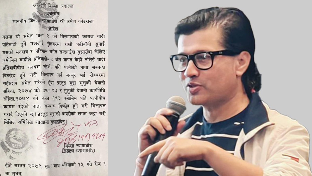 राष्ट्रिय स्वतन्त्र पार्टी (रास्वपा)ले रूपन्देही-३ का लागि चयन गरेको उम्मेदवार डा. लेखजंग थापाले एउटा श्रीमतीसँग सम्बन्ध विच्छेद गरेको प्रमाण सार्वजनिक गरेका छन् ।