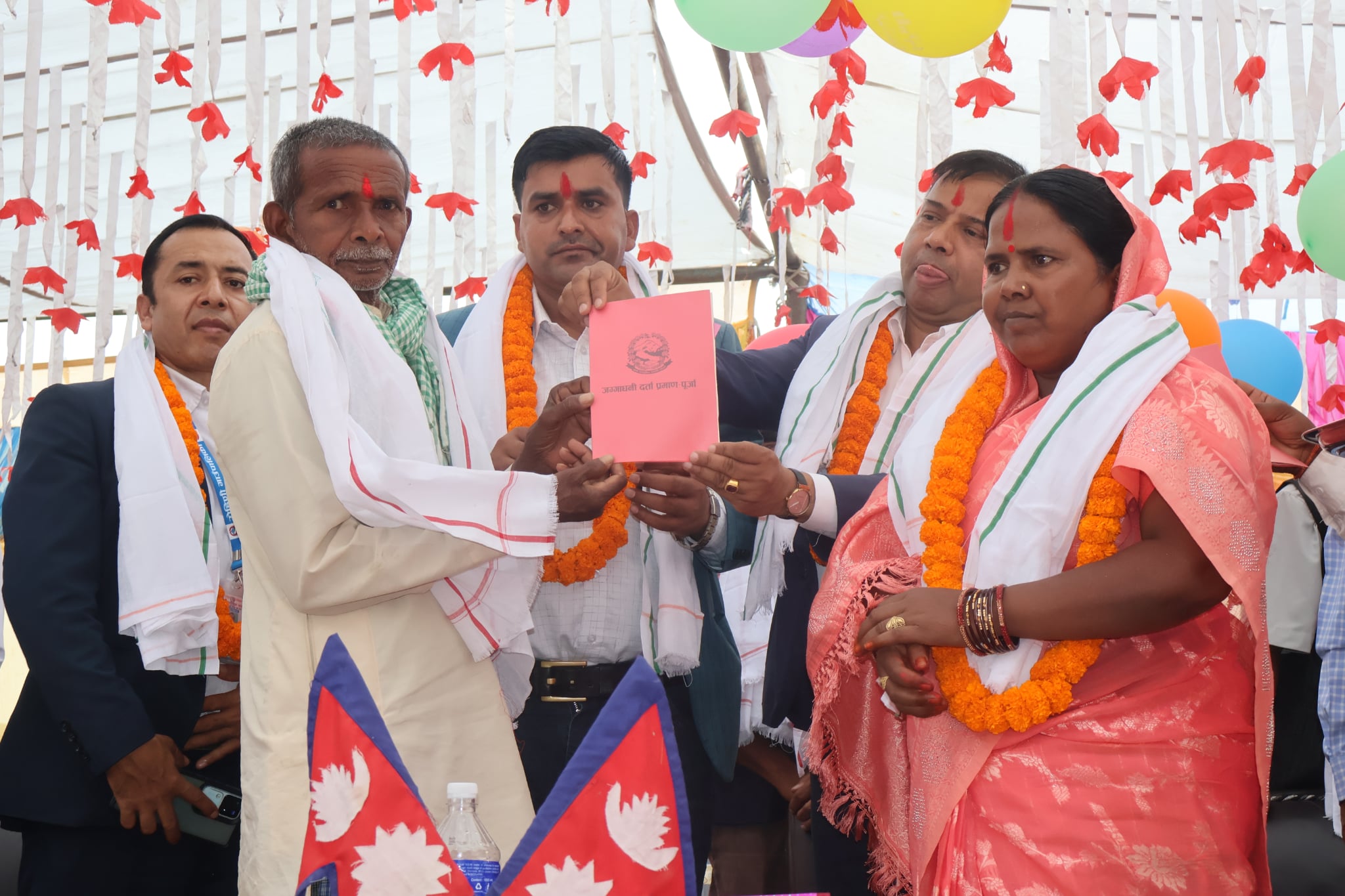 ‘गाउँ ब्लक जग्गाको प्रमाणपूर्जा जनतासँग नहुँदा निकै नै समस्या थियो,’उनले भने–‘हामी नागरिकलाई लालपूर्जा वितरण गर्न लागिपर्यौं र आज यो कार्यमा सफल भएका महसुस गरेका छौँ ।’