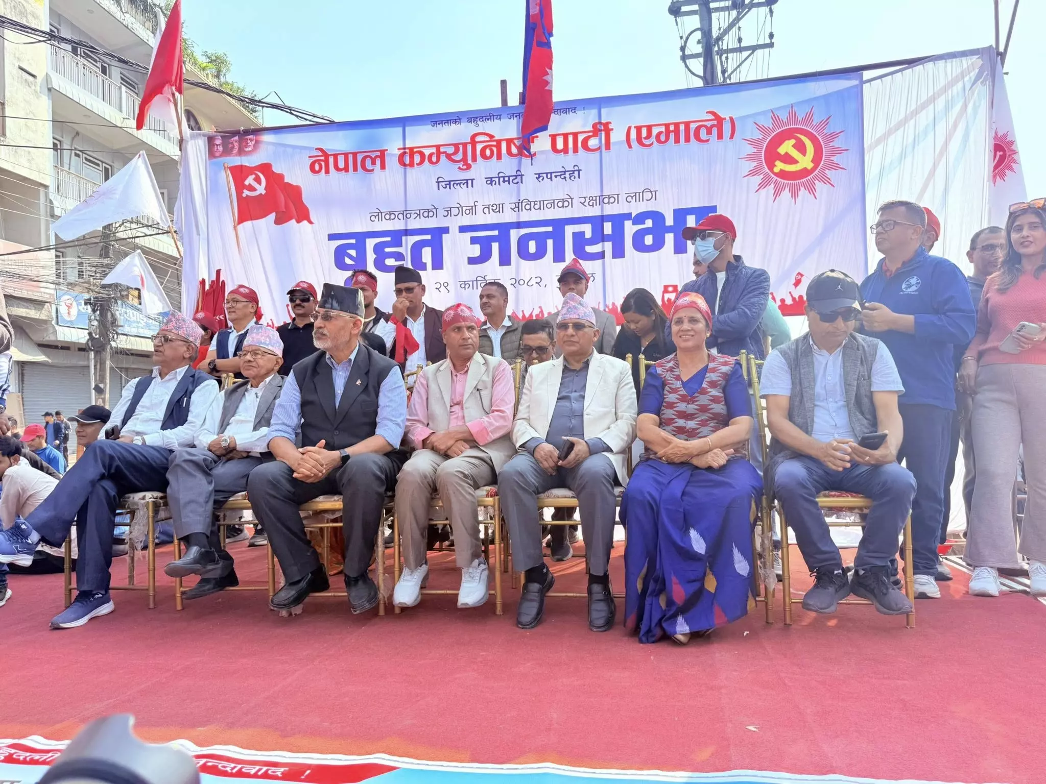 लोकतन्त्र र संविधानको रक्षा, संसद पुनर्स्थापना, सर्वपक्षीय सरकार गठन तथा जेन जी पुस्ताको माग सम्बोधनका एजेन्डा राखेर शनिबार बुटवलमा एमालेले प्रदर्शन सहित जनसभा गरेको हो।