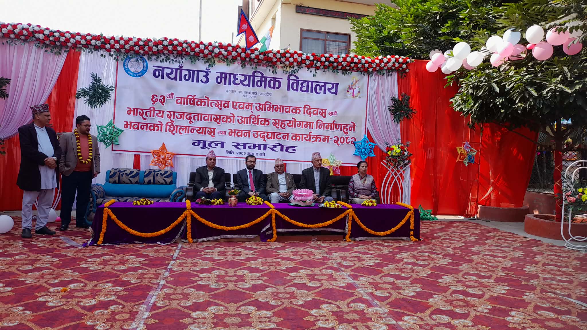 वार्षिकोत्सबको अवसरमा भारतीय राजदुतावासको आर्थिक सहयोगमा निर्माणहुन लागेको १२ कोठे भवनको शिलान्यास तथा बुटवल उपमहानगरपालिकाको सहयोगमा बनेको सभाहल तथा दुई कक्षाकोठा सहितको भवन उद्घाटन समेत गरिएको थियो। साढे ४ करोड रकम अर्थात कुल बजेटको ९० प्रतिशत रकम दूतावासबाट आएका थिए।