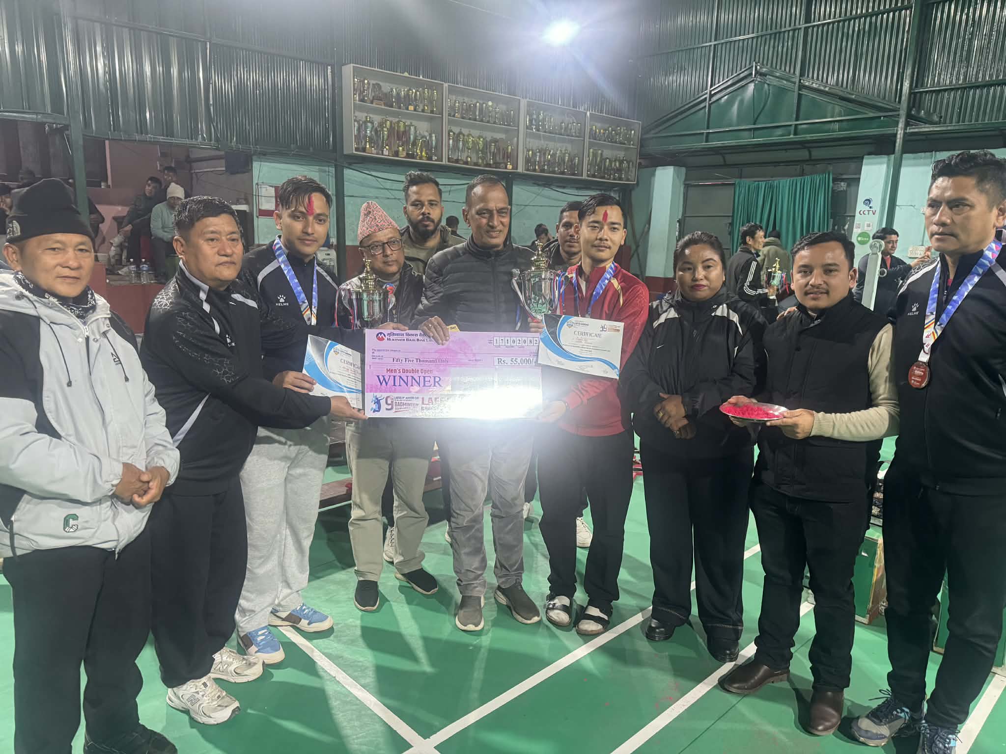 तेस्तै मदौलिया ब्याडमिटन क्लबका खेलाडी हरू बिबेक अधिकारी बिबेक न्यौपाने गणेस रायमाझी नसिङ बुढा को टिमले १० ÷ १० हजार कप मेडल प्रमाणपत्र प्राप्त गरेका हुन । प्रदेश सि लेवल तर्फ लाफा समुहका खेलाडी सौरव अर्याल र संजिप खाती जेडी प्रथम भएको हो उनिहरूले ३५ हजार कप मेडड प्रमाणपत्र हात पारेका हुन भने घोराई ब्याडमिटन क्लबका मदन खडका र बिशाल घमको जोडीले नगद २५ हजार कप मेडल प्रमाणपत्र तुतिय हुने गुल्मी लुम्पेकका खेलाडी यादब थापा र बिशाल थापा ,युवराज पुन रबि ठकुरीको जोडीले ७ हजार ५ सय ७ हजार ५ सय कप मेडल प्रमाणपत्र पाएका हुन ।