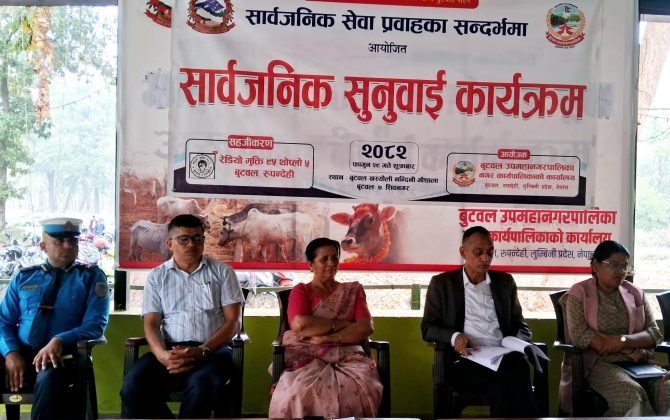 पुरा पढ्नुहोसउपमहानगरपालिकाले सार्वजनिक सुनुवाइ सम्पन्न गरेको छ । नगरले प्रदान गर्ने सेवा प्रवाहका बारेमा बुटवल ७ नन्दिनी गौशालामा कार्यक्रम सम्पन्न गरेको हो । कार्यक्रममा विभिन्न वडाका स्थानीय सेवाग्राहीहरुले शिक्षा, स्वास्थ्य खानेपानी ,सरसफाइ,विद्युतका पोलको समस्याहरु रहेको...