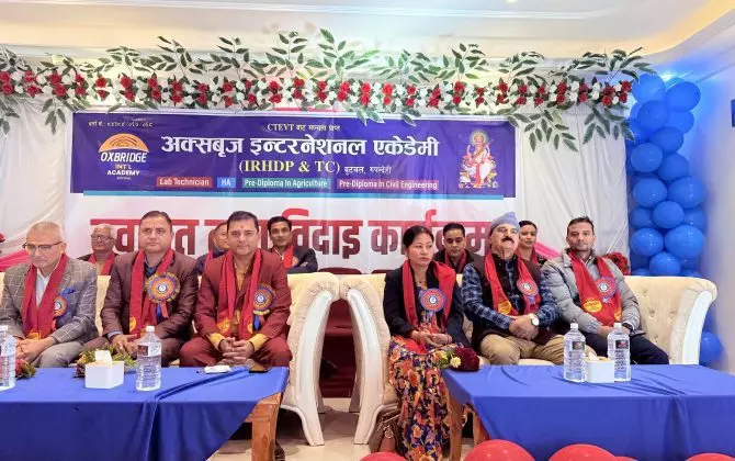 पुरा पढ्नुहोसबुटवल । बुटवल कालिकानगरमा रहेको अक्सबृज इन्टरनेशनल एकेडेमीले विद्यार्थी स्वागत तथा विदाई कार्यक्रम गरेको छ । अक्सबृजले शनिबार बुटवलमा एक कार्यक्रमको आयोजना गरेर एचएको पहिलो वर्षमा अध्ययन गर्नेलाई स्वागत तथा ल्याब टेक्निेसियन तेस्रो वर्ष अध्ययन...