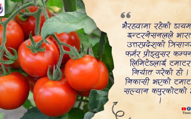 पुरा पढ्नुहोसबुटवल । पछिल्लो समय टमाटरको भाउ नेपाली बजारमा आकासिएको छ । अहिले पनि नेपालीहरुले १०० देखि १३० रुपैया प्रतिकेजीमा खरिद गरिरहेका छन् । डेढ महिना अघि सम्म ४० रुपैयाँ रहेको टमाटर एक्कासी बढेको हो...
