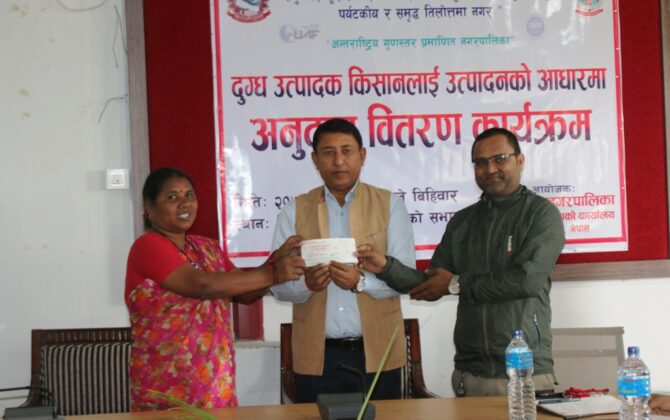 पुरा पढ्नुहोसरुपन्देहीको तिलोत्तमा नगरपालिकाले दुग्ध उत्पादक किसानलाई उत्पादनको आधारमा नगद अनुदान वितरण गरेको छ । दूधमा आत्मनिर्भर तिलोत्तमाले व्यवसायिक पशुपालनलाई प्रोत्साहन गर्न उत्पादनमा आधारित अनुदान कार्यक्रम अघि बढाएको हो । नगरपालिकाले पांच वर्षदेखि पशु बीमा...