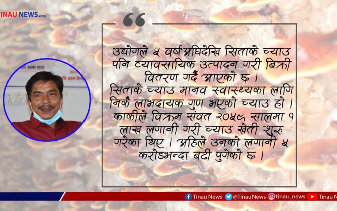 पुरा पढ्नुहोसबुटवल । पाल्पाका किसान केशवबहादुर कार्कीले रातो च्याउं उत्पादन गरेर मनग्य आम्दानी गरिरहेका छन् । रातो च्याउं प्रतिकिलो ६ हजार रूपैयांमा बिक्री हुन्छ । गानोडर्मा भनिने रातो च्याउ सुकाएर विदेशमा बेच्दा किलोको ३५ हजार रूपैयांसम्म...
