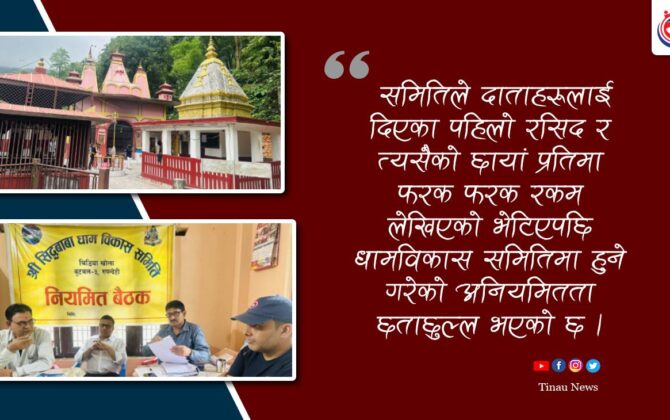 पुरा पढ्नुहोसबुटवलको सिद्धबाबाधाम विकास समितिमा आर्थिक अनियमितता भएको भन्दै अख्तियार दुरुपयोग अनुसन्धान आयोगको कार्यालयमा उजुरी परेको छ । बुटवल उपमहानगरपालिका वडा नं. ३ तल्लो सिद्धबाबामा रहेको धाम विकास समितिमा दाताहरुले सेवा शुल्क वापत दिएको रकममा नै...