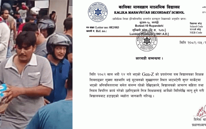 जेनजीको आन्दोलनका क्रममा लुटपाटमा संलग्न भएको पाइएपछि बुटवलमा एक जना शिक्षकको जागिर गएको छ । बुटवलको कालिका मानवज्ञान माविमा पढाउने शिक्षक शिवशंकर शुक्लाले आन्दोलनका नाममा भाटभटेनी सुपर मार्केटको लुटपाटमा संलग्न भएपछि विद्यालयले उनलाई जागिरबाट बर्खास्त...