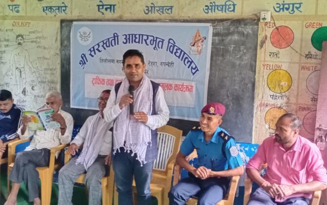 पुरा पढ्नुहोसबुटवल । तिलोत्तमा १४, रेहरामा रहेकोसरस्वती आधारभूत विद्यालयमा शुक्रबार ट्राफिक तथा दुव्र्यसनविरुद्ध सचेतना प्रशिक्षण तथा अन्तर सदनात्मक गायन प्रतियोगिता सम्पन्न भएको छ । जसमध्ये ट्राफिक तथा दुव्र्यसनविरुद्ध प्रशिक्षणमा विद्यार्थीहरुलाई सडकपेटी, जेब्राकस, आकासेपुल लगायत ट्राफिक नियमसम्बन्धी...