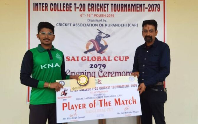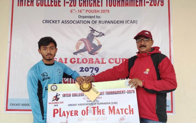 पुरा पढ्नुहोसभैरहवा । रुपन्देहीको भैरहवामा जारी अन्तरकलेज जिल्लास्तरीय ‘साई ग्लोबल कप–२०७९’ टी–२० क्रिकेट प्रतियोगितामा बिहीबार सम्पन्न दुई खेलमा लीलाराम न्यौपाने उच्च माबि र लुम्बिनी इन्जिनियरिङ कलेज बिजयी भएका छन् । सिद्धार्थ रंगशालामा भएका खेलहरु मौसमले...