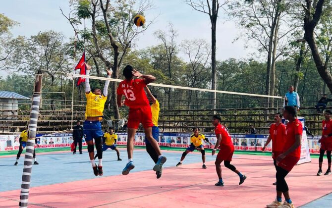 पुरा पढ्नुहोसबुटवल । रुपन्देहीको तिलोत्तमामा जारी नवौं मणिमुकुन्द कप राष्ट्रिय पुरुष भलिबल प्रतियोगितामा बिभागीय टिमको दबदबा कायमै रहेको छ । बिभागीय टिम नेपाल पुलिस, एपिएफ, त्रिभुवन आर्मी र गण्डकी प्रदेश खेलको सेमिफाईनल पुगेपछी फाईनल रोचक हुने...