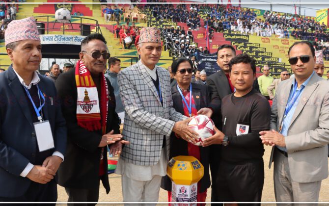 पुरा पढ्नुहोसविद्यालयस्तरबाटै खेलाडी उत्पादन गर्न बुटवल उपमहानगरपालिकाको आयोजनामा अन्तर विद्यालयस्तरीय बुटवल मेयर कप फुटबल प्रतियोगिता शुरु भएको छ। बिहीबार बुटवल ११ देवीनगरस्थित एन्फा टेक्निकल सेन्टरको मैदानमा नगर प्रमुख खेलराज पाण्डेयले प्रतियोगिताको उद्घाटन गरे। प्रतियोगिताको उद्घाटन गर्दै...