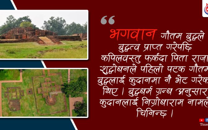 पुरा पढ्नुहोसकुदान पुरातात्विक बौद्ध सम्पदा हो । गौतम बुद्धले बुद्धत्तो (निर्वाण) प्राप्त गरिसकेपछि पहिलोपटक आफ्ना पिता राजा शुद्धोधनसँग भेट भएको स्थान हो । कपिलवस्तुको तौलिहवा खुनुवा सडकखण्डमा पर्ने कुदान तौलिहवादेखि करिब २.३ किमि दक्षिणतर्फ पर्छ...
