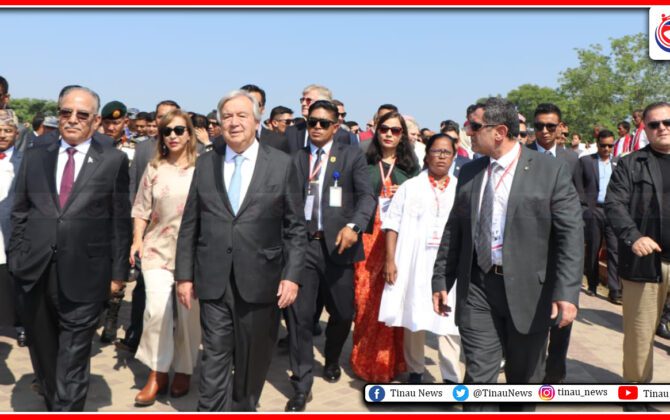 पुरा पढ्नुहोसनेपाल भ्रमणमा रहेका संयुक्त राष्ट्रसंघका महासचिव एन्टोनियो गुटेरेस लुम्बिनी आइपुगेका छन्। मंगलबार बिहान अन्नपूर्ण बेसक्याम्प पुगेका गुटरेस विशेष विमानबाट गौतमबुद्ध अन्तराष्ट्रिय विमानस्थल हुँदै लुम्बिनी आइपुगेका हुन्। महासचिव गुटेरेस गौतमबुद्ध अन्तराष्ट्रिय बिमानस्थलबाट लुम्बिनी भने हेलिकप्टरबाट आएका हुन्।...