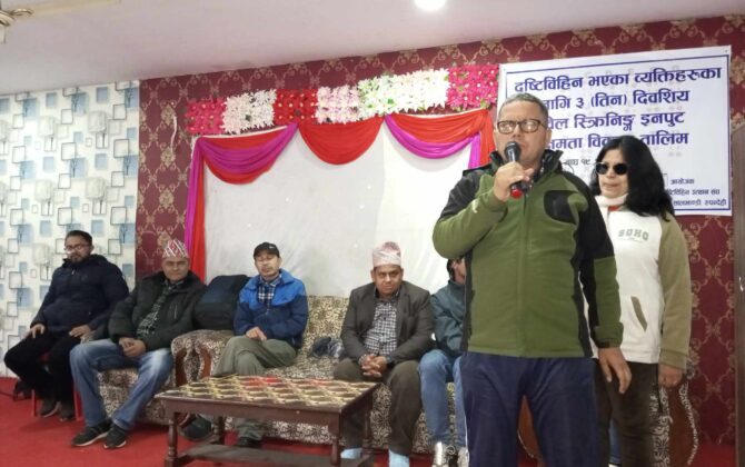 दृष्टिविहिन भएका व्याक्तिहरुको लागि ३ दिने ब्रेल स्क्रिनिङ्ग ईनपुट तालिम