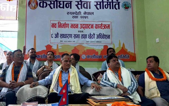 बुटवल । कसौधन सेवा समिति रुपन्देही बुटवलको नवनिर्मित भवनको उद्घाटन, आठौं वार्षिक साधारण सभा तथा छैठांै अधिवेशन सोमबार सम्पन्न भएको छ । सेवा समितिका सदस्यहरुबाट संकलन गरिएको रकमबाट निर्माण गरिएको भवनको बुटवल उपमहानगरपालिकाका नगरप्रमुख खेलराज...