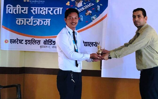 पुरा पढ्नुहोसबुटवल । बुटवल–८ सुख्खानगरमा अवस्थित एभरेष्ट इ.बो. स्कुलमा वित्तीय साक्षरता कार्यक्रम सम्पन्न भएको छ । कक्षा ११ र १२ मा वित्तशास्त्र विषय अध्ययन गर्ने विद्यार्थीहरुलाई लक्षित गरी ‘वित्तीय साक्षरता कार्यक्रम’ गरिएको हो । विद्यालयका उप प्राचार्य...