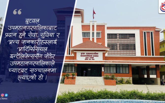 पुरा पढ्नुहोसबुटवल । बुटवल उपमहानगरपालिकाले सेवाप्रवाहलाई सहज र सरल बनाउन एआई च्याटबट सञ्चालनमा ल्याएको छ । बुटवल उपमहानगरपालिकाबाट प्रदान हुने सेवा, सुविधा र अन्य जानकारीहरुलाई आर्टिफिसियल इन्टेलिजेन्ससँग जोडेर उपमहानगरपालिकाले च्याटबट सञ्चालनमा ल्याएको हो । बुटवल नामको च्याटबटको...