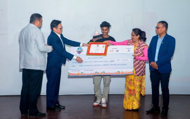 पुरा पढ्नुहोसभगवान गौतम बुद्धको जन्मस्थल लुम्बिनीको प्रवद्र्धन र प्रचार प्रसार गर्ने उदेश्यले सञ्चालित घुमौ लुम्बिनी टिकटक च्यालेन्ज प्रतियोगिता २०२३ को बिजेताहरुलाई पुरस्कार वितरण गरिएको छ । काठमाडौंमा संस्कृति, पर्यटन तथा नागरिक उड्डयन मन्त्रि माननीय सुदन किरातीले...