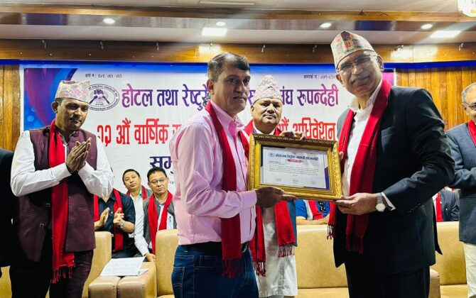 होटल व्यवसायी रुपन्देहीद्वारा पत्रकार भुसाल सम्मानित
