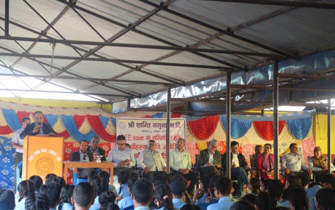 पुरा पढ्नुहोसतिलोत्तमा । रुपन्देहीको तिलोत्तमा वडा नं–५ मणिग्राममा रहेको शान्ति नमुना माध्यमिक विद्यालयबाट एसइइमा सरिक हुने विद्यार्थीहरुलाई आज सोमबार शुभकामना कार्यक्रम गरिएको छ । शान्तिबाट यस बर्ष एसइइ परीक्षामा सहभागी हुने ४ सय ६१ जना...