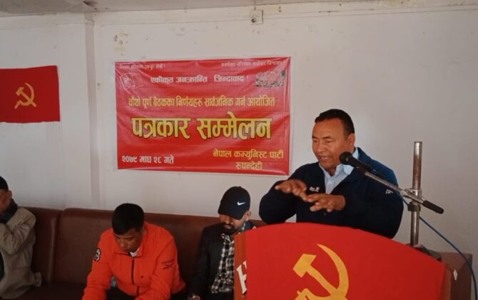 पुरा पढ्नुहोसबुटवल । नेपाल कम्युनिस्ट पार्टी रुपन्देहीले शनिवार बुटवलमा पत्रकार सम्मेलन गरि संघर्षका कार्यक्रम सार्वजनिक गरेको छ। लामो समयपछी नेकपा महासचिव बिप्लवले काठमाडौमा भेटघाट तथा पत्रकार सम्मेलन गरि पार्टिका कार्यक्रम सार्बजनिक गरे लगत्तै नेकपा रुपन्देहीले पनि राष्ट्रीय...