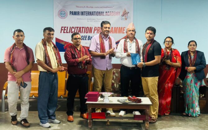 पुरा पढ्नुहोसपामिर इन्टरनेशनल एकेडेमी तिलोत्तमा–२ जानकीनगरले एसईई–२०८० मा उत्तीर्ण विद्यार्थीहरुलाई नगदसहित सम्मान गरेको छ । विद्यालयले तिलोत्तमा नगरमै सर्वोत्कृष्ट जीपीए (३.९१) ल्याउने विद्यार्थी एन्जिल पाण्डेसहित उत्तीर्ण विद्यार्थीहरुलाई सम्मान गरेको हो । पामिरले उत्कृष्ट जीपीए ल्याएर नगरमै...