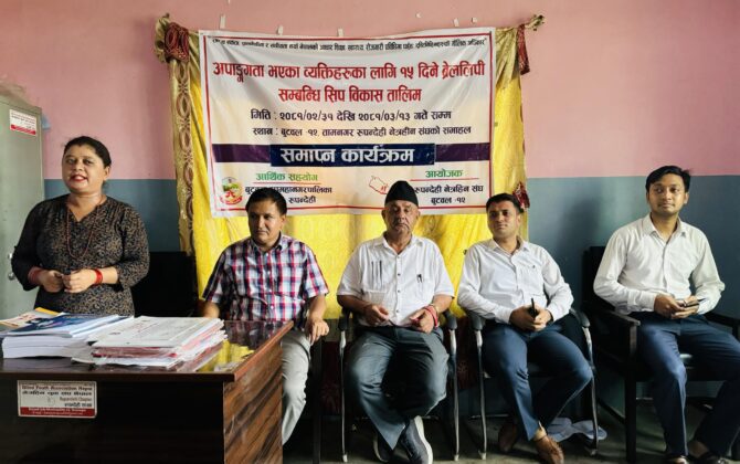 बुटवल । बुटवल उप–महानरपालिकाको आयोजना तथा रुपन्देही नेत्रहिन संघको प्राविधिक सहयोगमा अपाङ्गता भएका व्याक्तिहरुको लागि १५ दिने ब्रेल प्रशिक्षण तालिम प्रदान गरिएको छ । तालिमको बुधवार एक कार्यक्रमका विच समापन गरिएको छ । तालिम समापन...