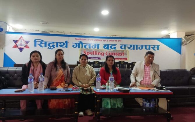 पुरा पढ्नुहोसबुटवल। सिद्धार्थ गौतम बुद्ध क्याम्पसको ३२औं बार्षिक उत्सवको अवसरमा आज स्पेलिङ कन्टेस्ट सम्पन्न भएको छ । प्रतियोगितामा बिबिएस तेस्रो बर्षका सुर्य बिक,अनिशा पराजुली ,आसिश खडकाको समुह प्रथम भएको छ भने बिएड चौथो बर्षका भुबन...