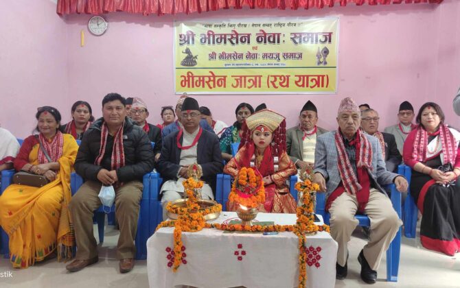 पुरा पढ्नुहोसबुटवलमा बसोबास गर्ने नेवार समुदायहरुले बुधबार भिमसेन भगवानको रथारोहण गरेको छ । भाषा, संस्कृति झिगु पौरख, नेपाल सम्वत राष्ट्रिय गौरव नारासहित भिमसेन नेवा समाजको आयोजनामा नेवारहरुको ईष्ट देवता भिमसेन भगवानको रथारोहण गरि बजार परिक्रमा...